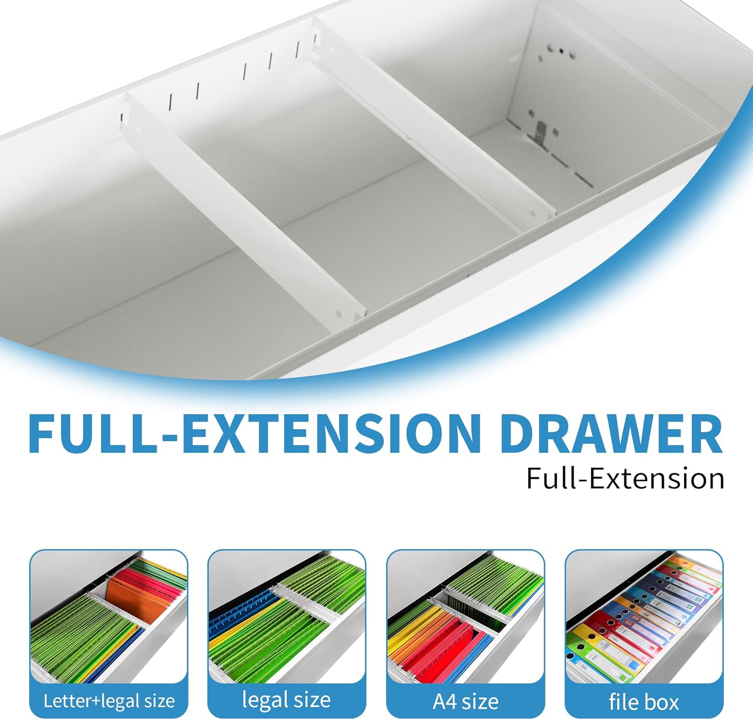 - 【Humanized Design】This 2-drawer filing cabinet has ball bearing fully floating drawers for smooth, quiet opening and closing. This friendly feature enhances convenience and minimizes disruption in the office environment.