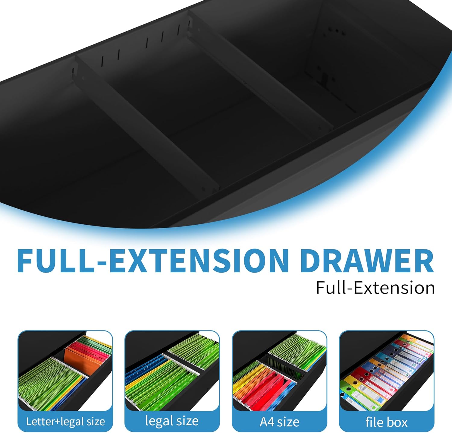 - 【Large Storage Space】Large 2 drawer lateral file cabinets have deep and spacious drawers, which can hold Letter, Legal, A4 and F4 size file folders. The adjustable hanging bars allow you to customize the drawers to your specific needs, keeping your files organized and easy to access.