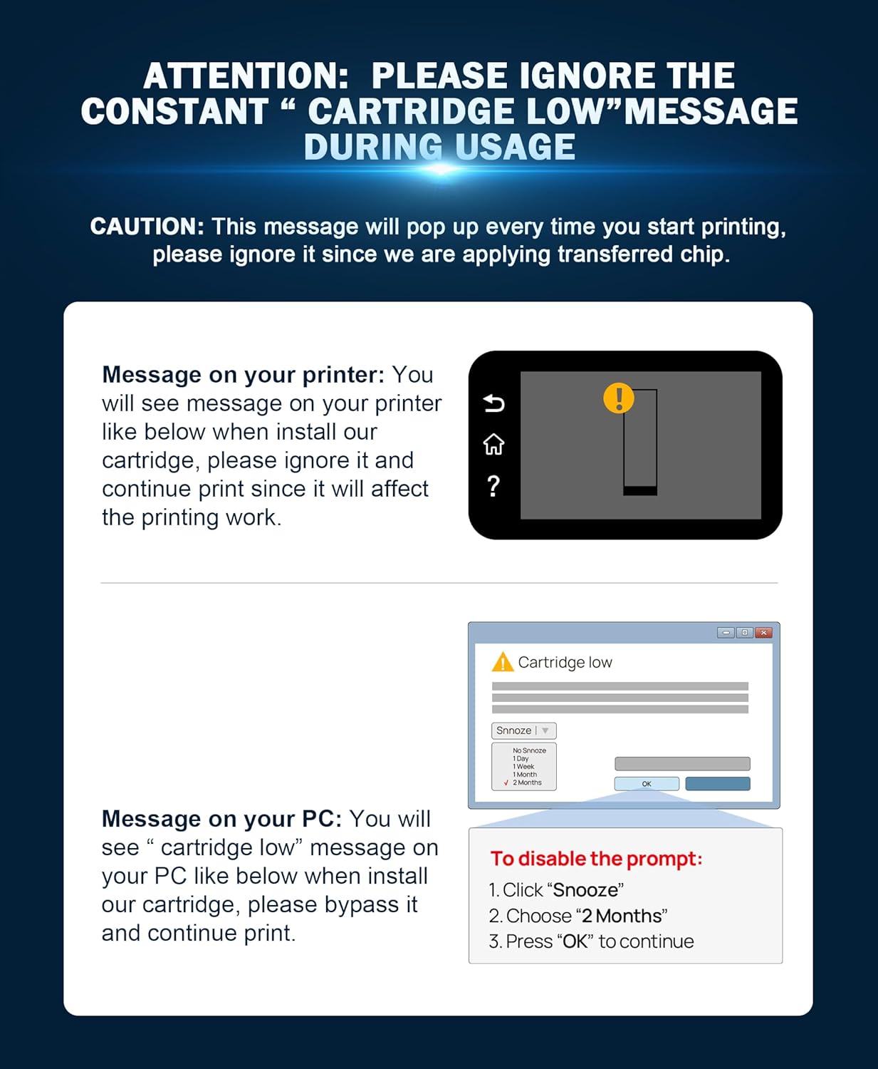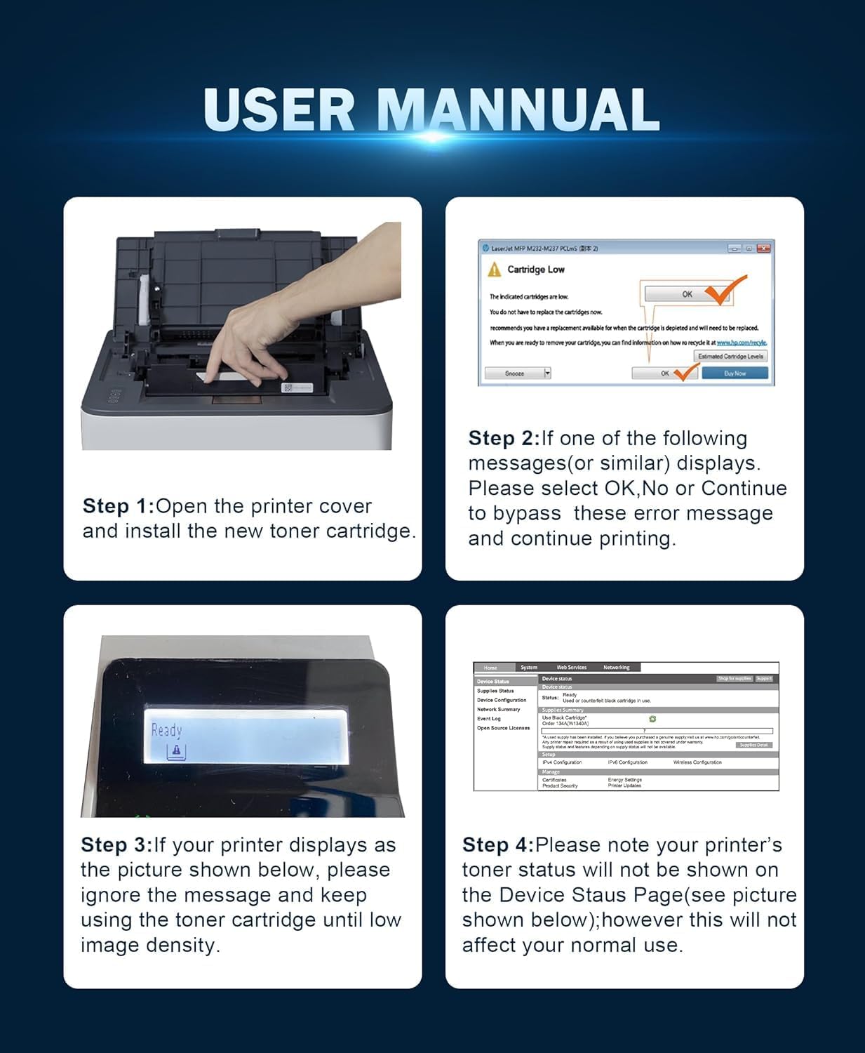 - Low Ink Tips: The printer working with our toner could not show the remaining toner level ,but which would not affect the printing and page yield.