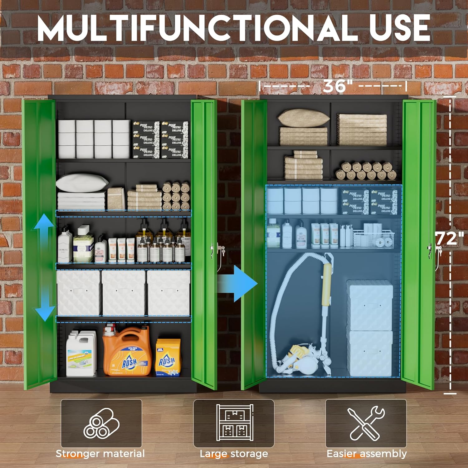 Greenvelly Metal Storage Cabinet,72" Steel Storage Cabinets with Doors and Adjustable Shelves, Metal Tool Cabinets, Locking File Cabinet for Home Office, Garage, School (Black Green36 Wx18 D)