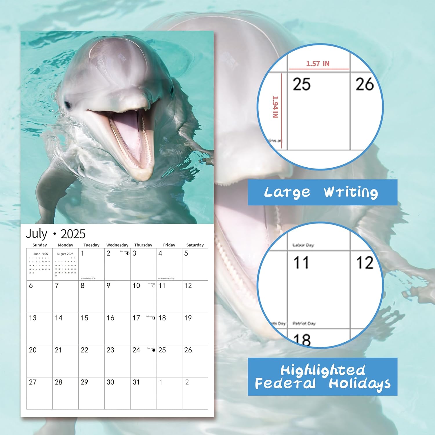 - PROFESSIONAL CONTENT DESIGN - You'll love the feeling of bringing order and organization to your life.Oversized everyday blocks (1.5" x 1.9") give you extra space to jot down tasks and appointments. Includes all major US and Canadian holidays and moon phases. Exclude obscure holidays from other countries, which clutter your calendar and reduce your writing space.Size Closed: 12 x 12 inches.Size Open: 12 x 24 inches.