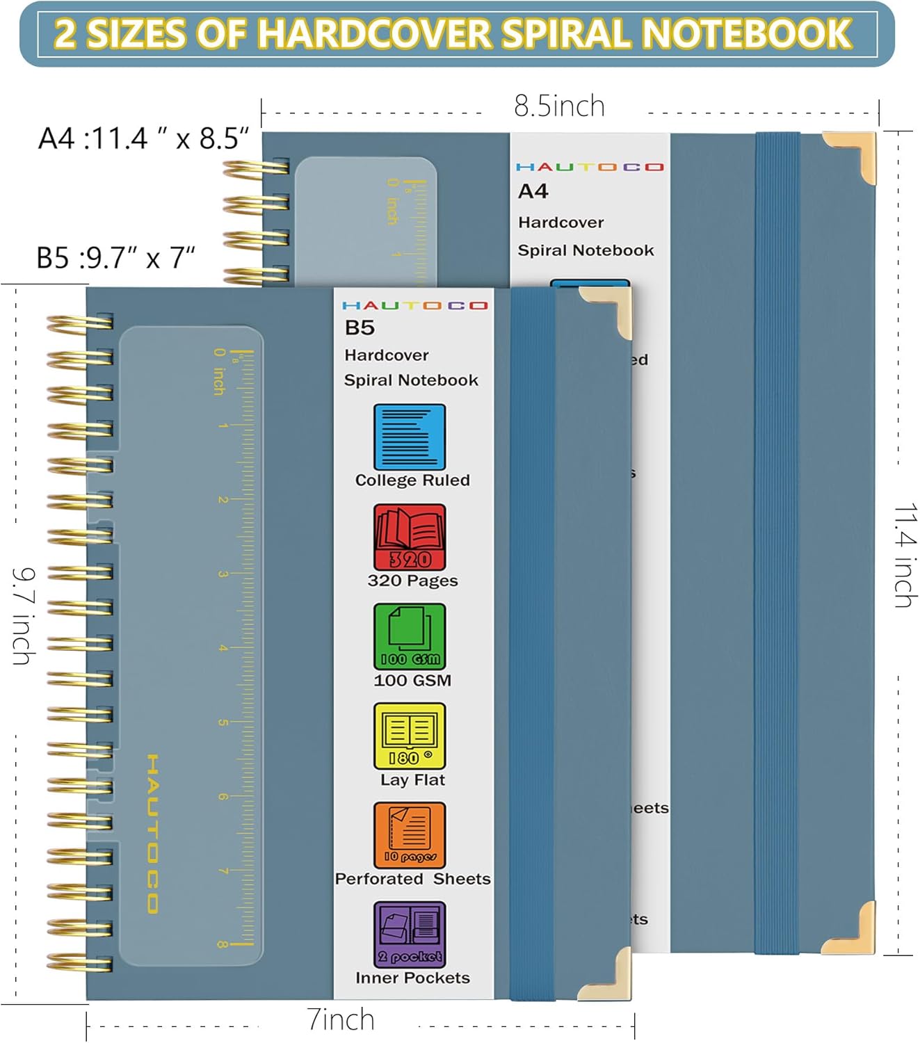 HAUTOCO Spiral Notebook Journal 8.5"x 11", College Ruled Leather Notebook with 320 Pages, 100 GSM Paper, A4 Hardcover Notebook, Lined Journaling Notebooks for Work, Office, School, Business, Airy Blue