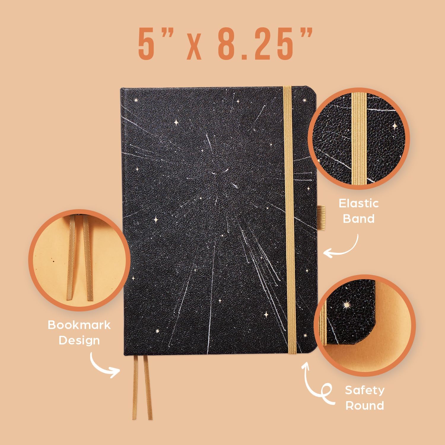 - FUNCTIONAL: Keep your thoughts and notes in one place with this small notebook. It includes an attached ribbon bookmark, a pen holder, a stitch detail on the cover, and an elastic band that fits around it to keep your notes secure.