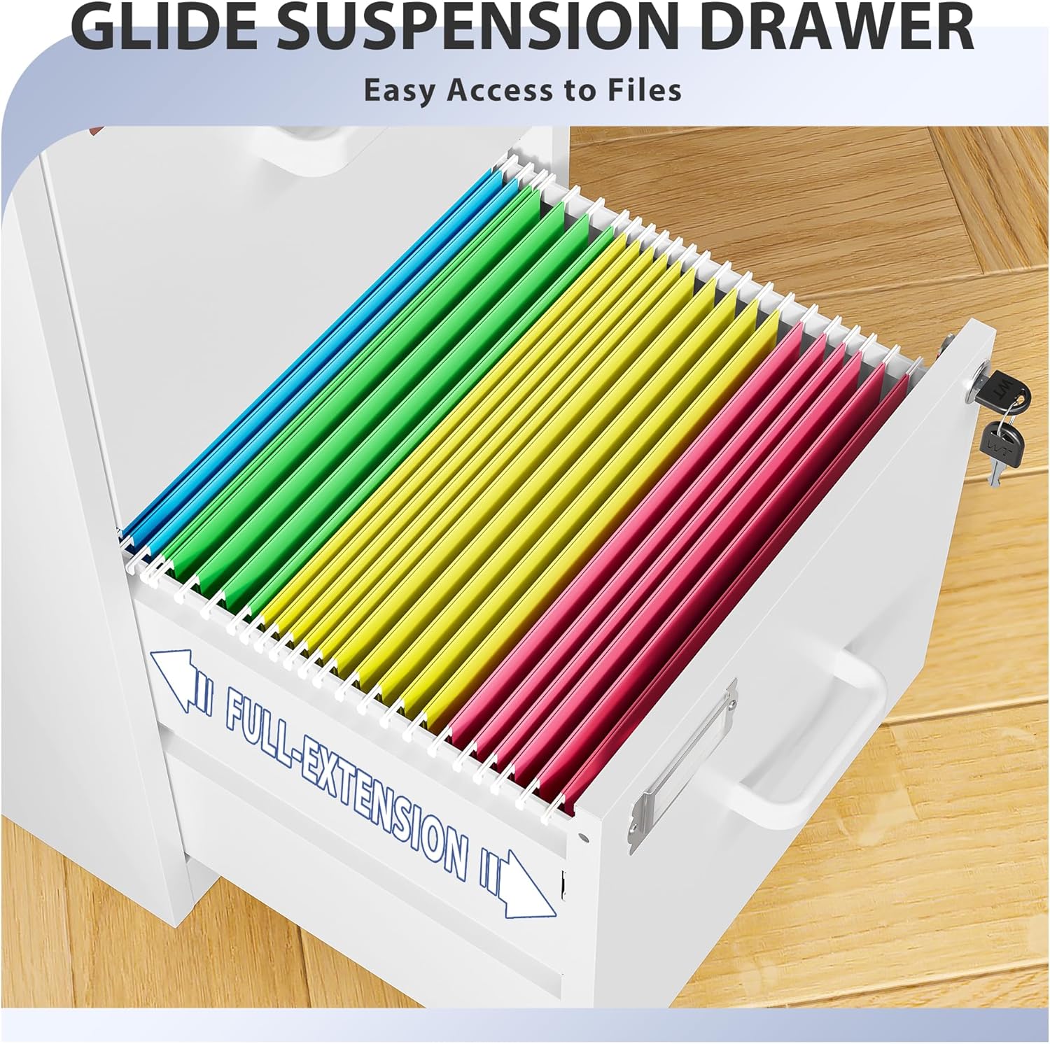 2 Drawer Vertical File Cabinet with Lock, White Metal, Under Desk, Easy Assemble