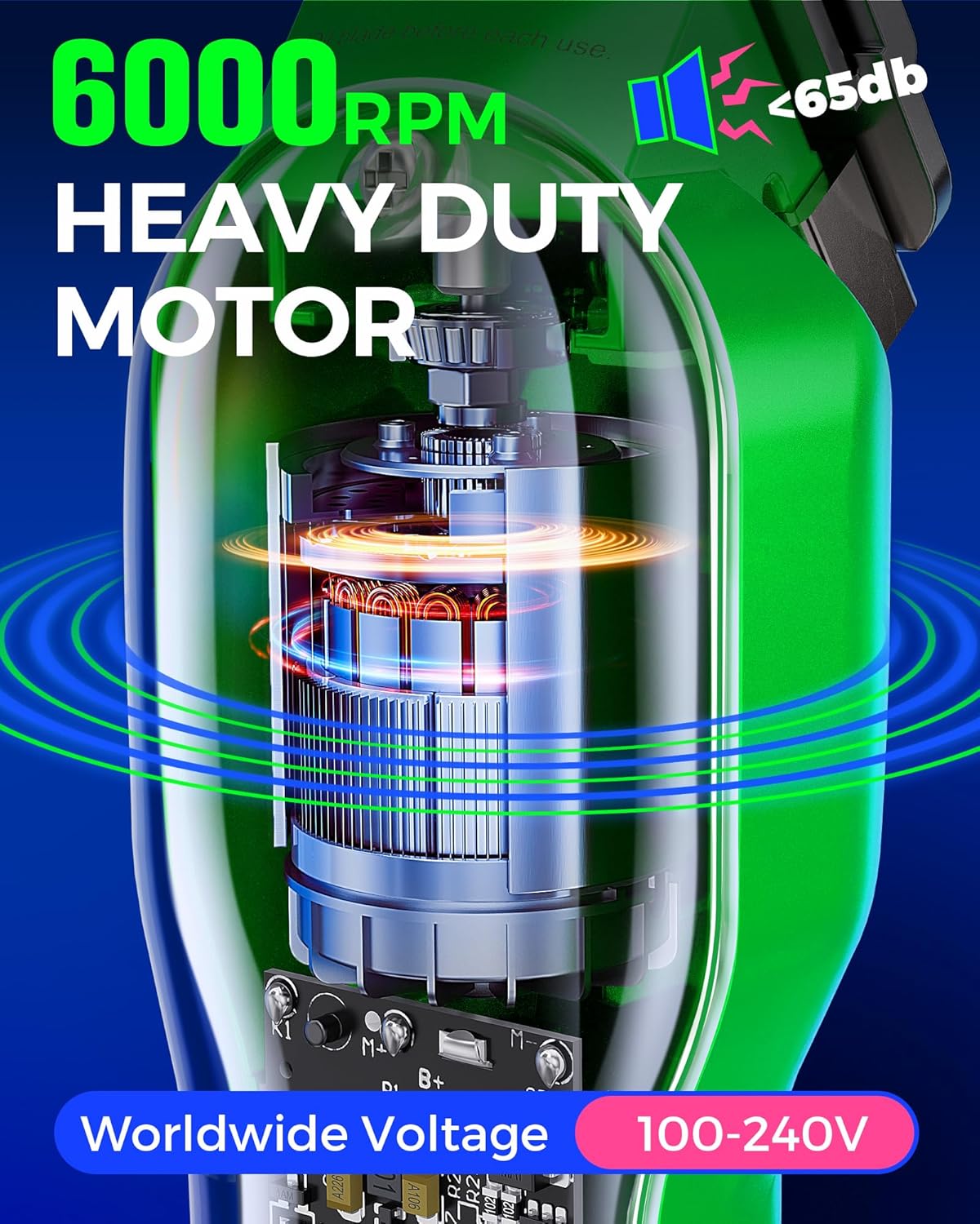 - EXQUISITE TRIMMING EXPERIENCE - GLAKER cordless hair clippers adopt heavy duty motor providing sufficient power ( 6000 - 7000 rpm) while keeping operation noise level below 65 dB, which is suitable for users with different hair types & at different age ranges. Besides, 440c stainless steel cutting blades is perfect for people with coarse hair