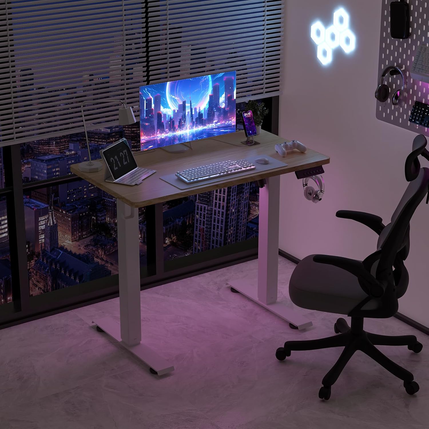 - Smooth Height Adjustment: Freely select electric standing desk height, from 27" to 46.5". Save your favorite three settings and smoothly switch between them