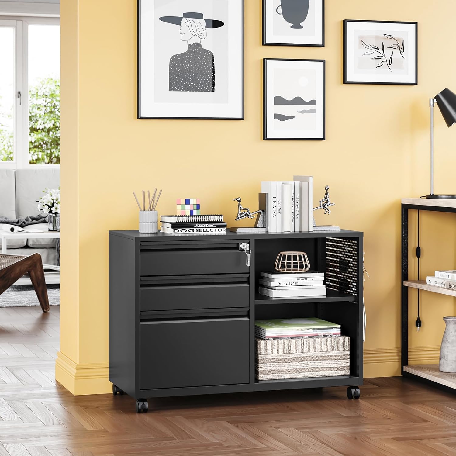 - 【Easy to Move and Assemble 】Cabinet is equiped with four rolling wheels. The mobile file cabinet can fix or move around your home office freely. The lateral file cabinet can be assembled quickly and easily by one person and features a convenient and uncomplicated installation procedure with all properly labeled components and installation instruction video and manual.