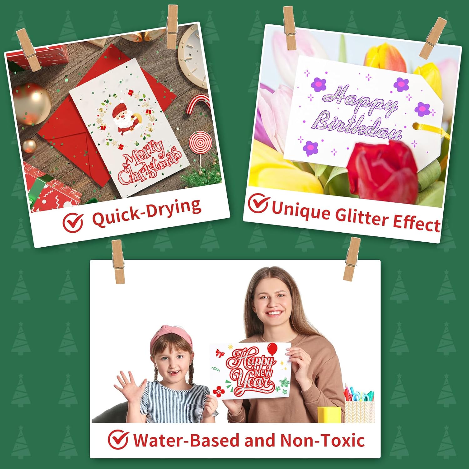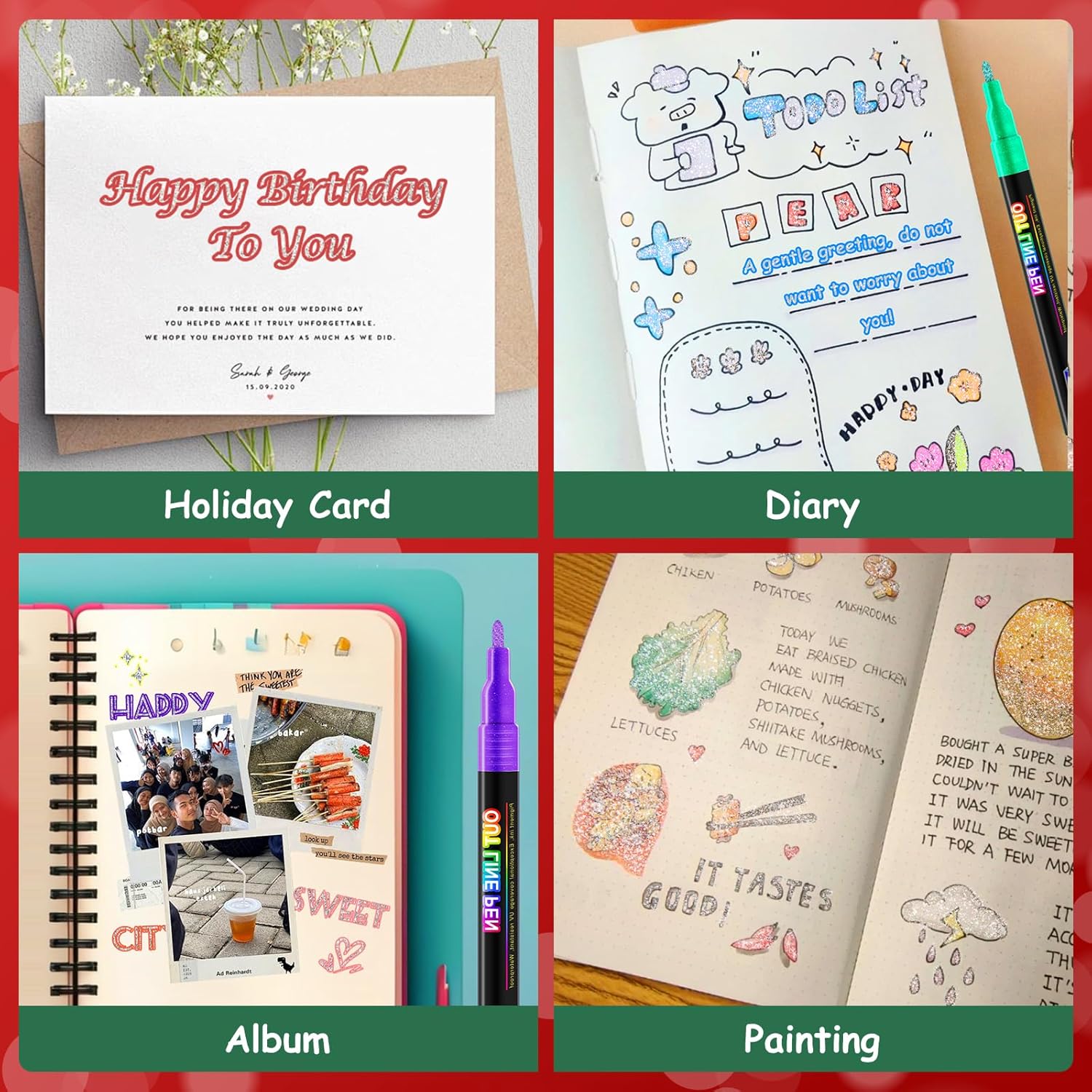 - ❤【Widely used】Glitter markers for kids can be used on many surfaces. such as rocks, wood, glass, paper, plastic etc. it's the best product for DIY crafts. You can use it to make Christmas decorations, New Year gift labels, diaries, birthday cards, and more. It can be used on various festivals.such as Christmas, New Year, Thanksgiving, gatherings, homecoming, etc