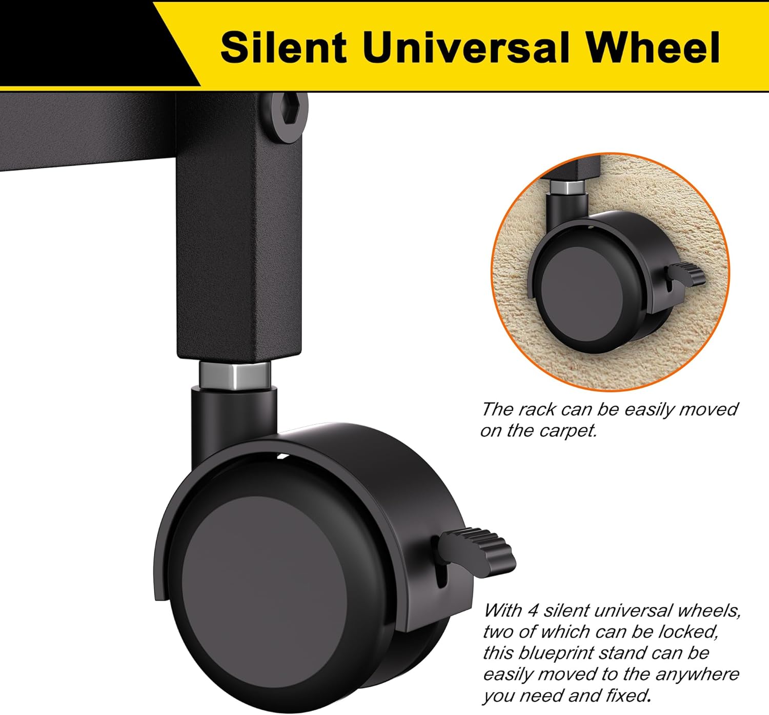 - 【Silent Wheels】Our blueprint holder is equipped with silent wheels and two brakes. It will remain silent during use and will not roll around chaotically in the office
