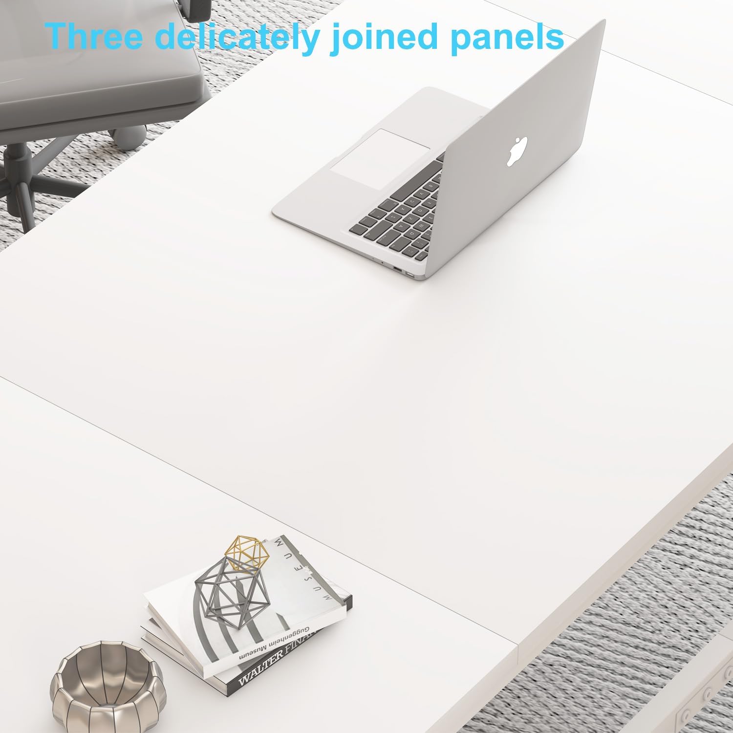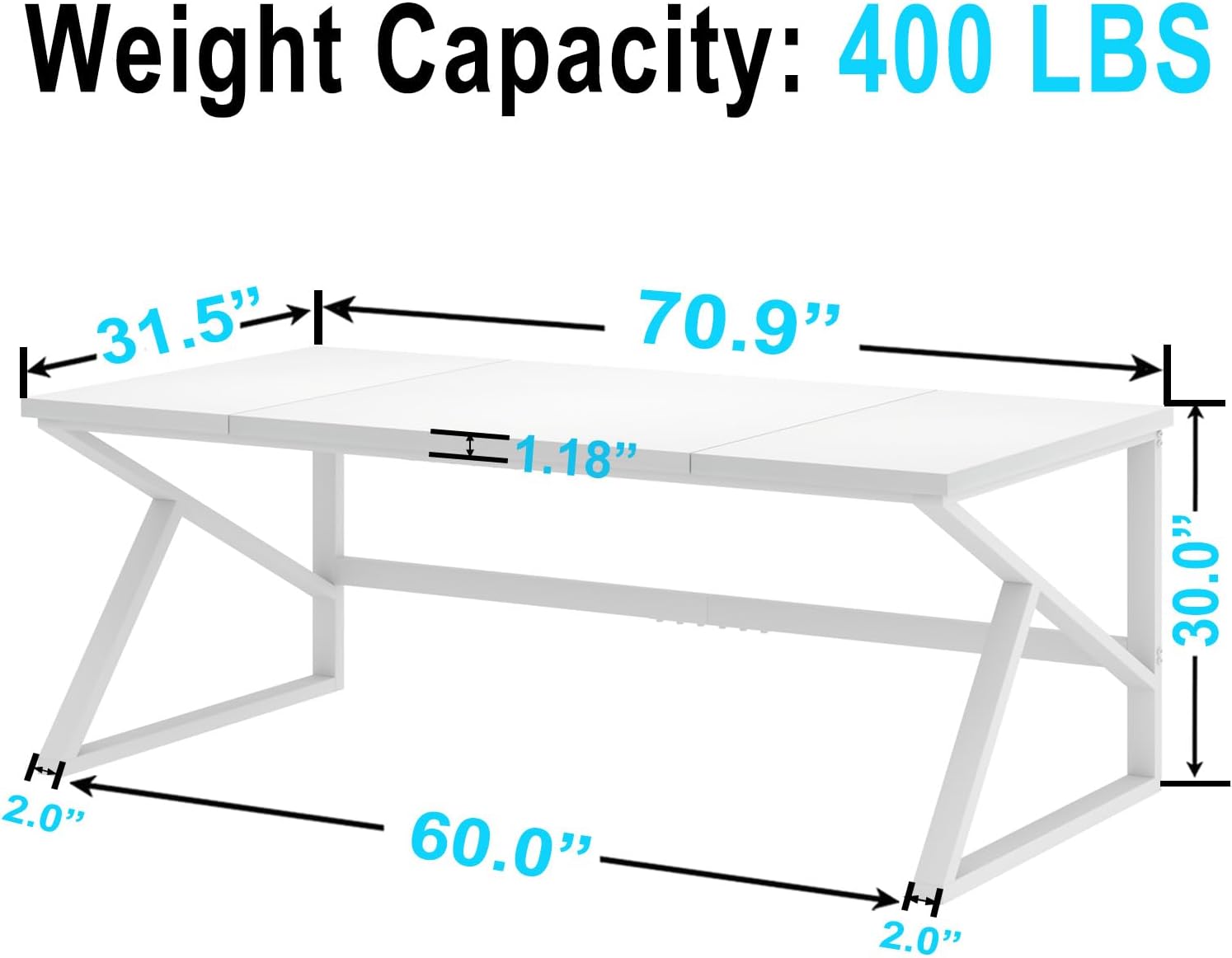 - ăSpacious Work Space & Leg Roomă: Measuring 31.5"D x 70.8"W x 29.5"H overall, this long white desk offers ample space to accommodate multiple monitors, pc, laptop, printers, files, books, lamps and any other office essentials, ensuring you have everything you need within arm's reach for enhanced productivity. The desktop is crafted from three meticulously joined panels, creating a cool cross-grain effect. Featuring two K-shaped metal legs with an open structure, this large computer desk for home office provides ample leg room, promoting comfort during extended periods of use.