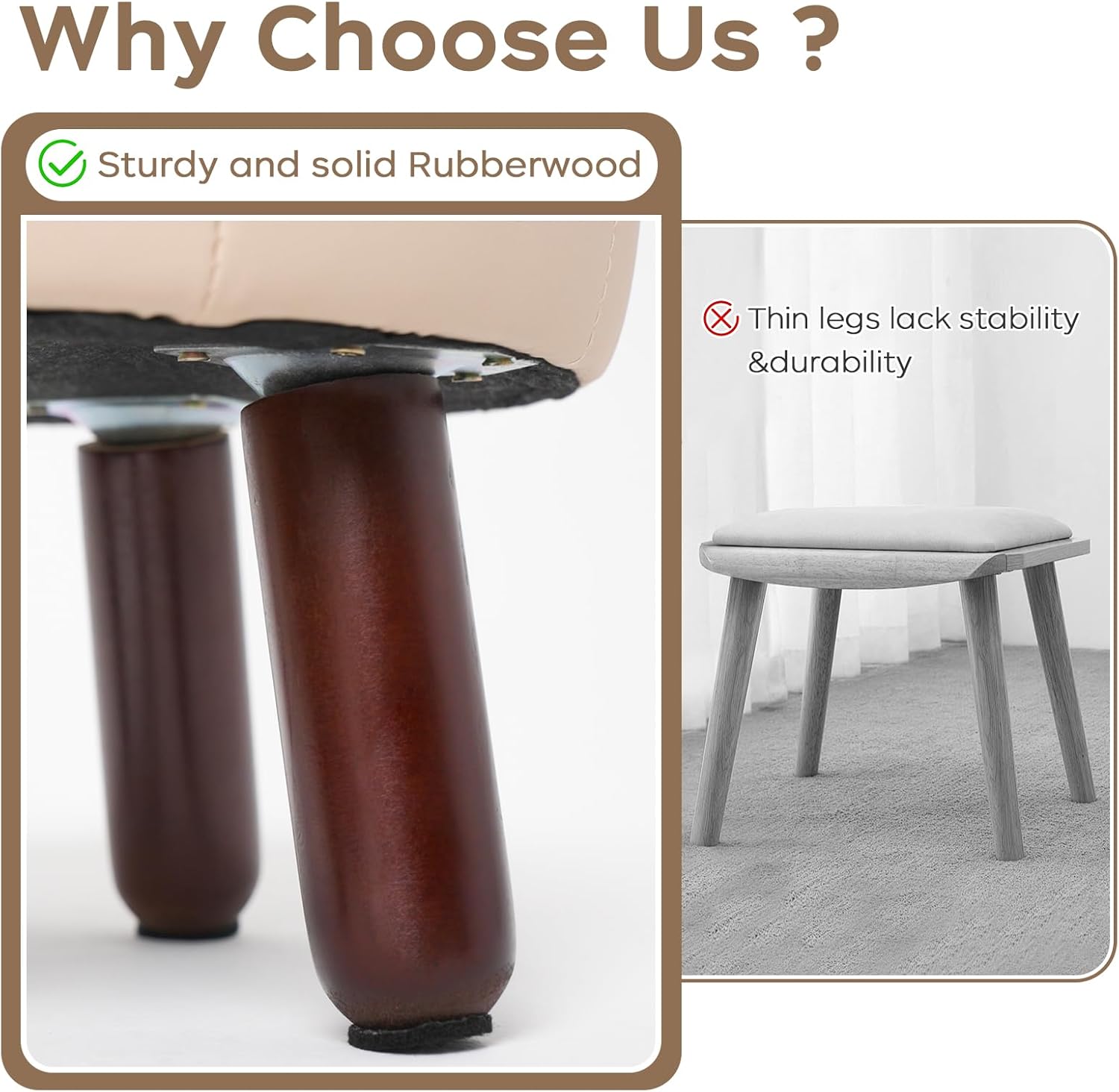 - ăAnti-Slip Designă- These leather foot stools small ottoman rubber legs come with dedicated felt pads to prevent scratches on floor and keep it from sliding.Wood leg with non-slip felt pad is quiet when moving, and can avoid leaving scratches on floor.The small footstool is perfect for small spaces and is compact enough not to get in anyone's way.