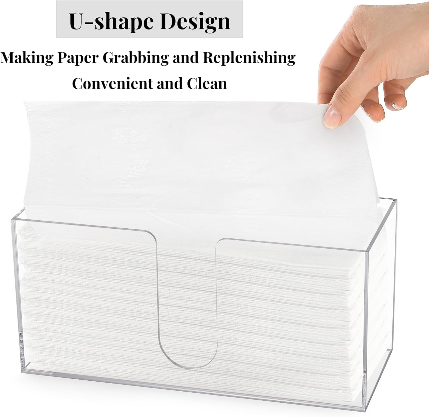 2 Pack Acrylic Paper Towel Holder, Folded Countertop Z-fold C-fold Trifold Napkin Dispenser, Clear Hand Towel Storage Holder Tray for Bathroom, Kitchen, Restaurant