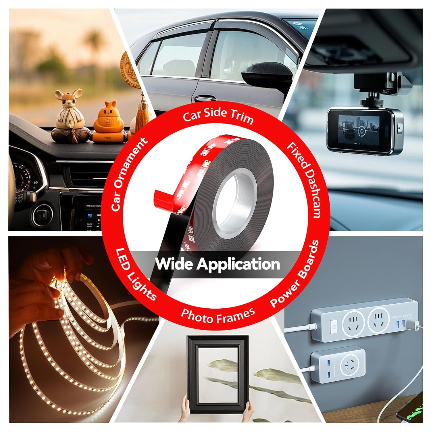 - 【Multi Purpose Adhesive Tape】Double sided tape for crafts has excellent adhesive ability and can effectively bond various smooth surfaces, including marble, tiles, metal, logos, glass panels, LED panels, car spoilers, door edges, body side trims, ABS plastic and PVC door sills, wheel lips, etc. It is very suitable for installing car accessories, LED light strips, signs, photo frames, posters, DIY projects, power boards, and other home and office decorations, meeting various bonding needs
