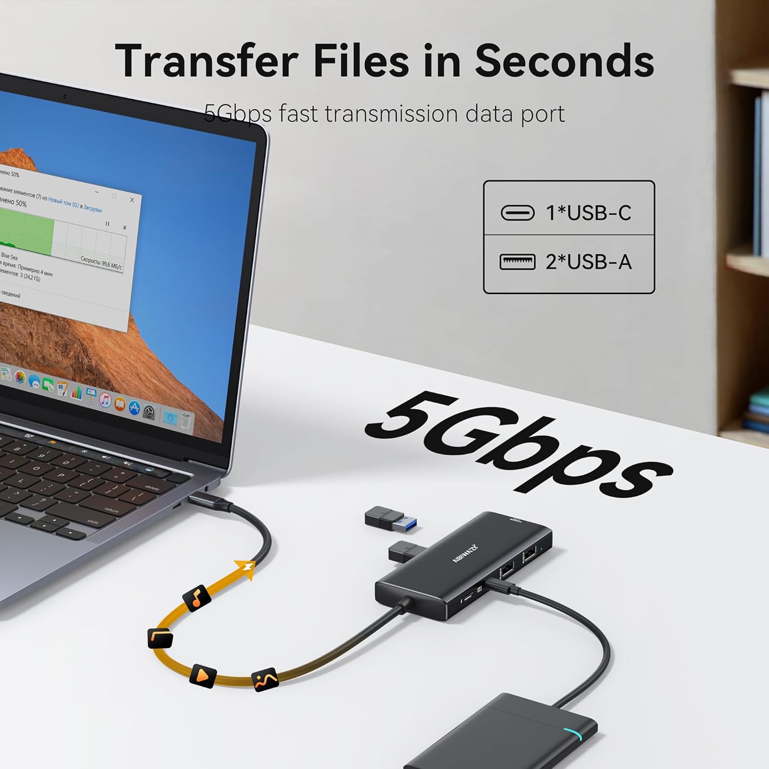 - 4K@60Hz HDMI to USB C hub: This usbc hub allows you to achieve up to 4K@60Hz (3840 x 2160) cystal-clear image,down compatible with 2K@120Hz, 1080P.This macbook air accessories adapter allows to mirror or extend your laptop screens or monitors by connecting monitors tvs projectors with hdmi ports.Please note that your usb c deviceโs usb c port must supportsvideo output (display port alt mode or thunderbolt),otherwise it will wonโt output images on monitors or screens