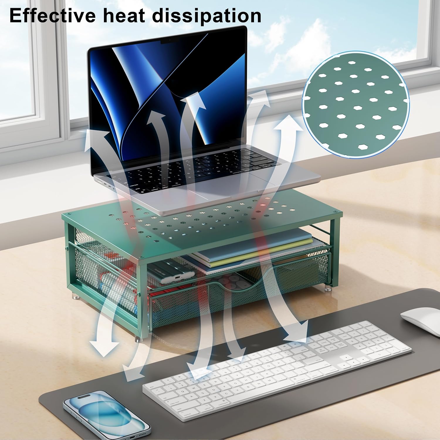 gianotter Computer Monitor Stand Riser, office organizer with Drawer, Office Organizers Storage for Classroom Office Supplies (Dark Green)