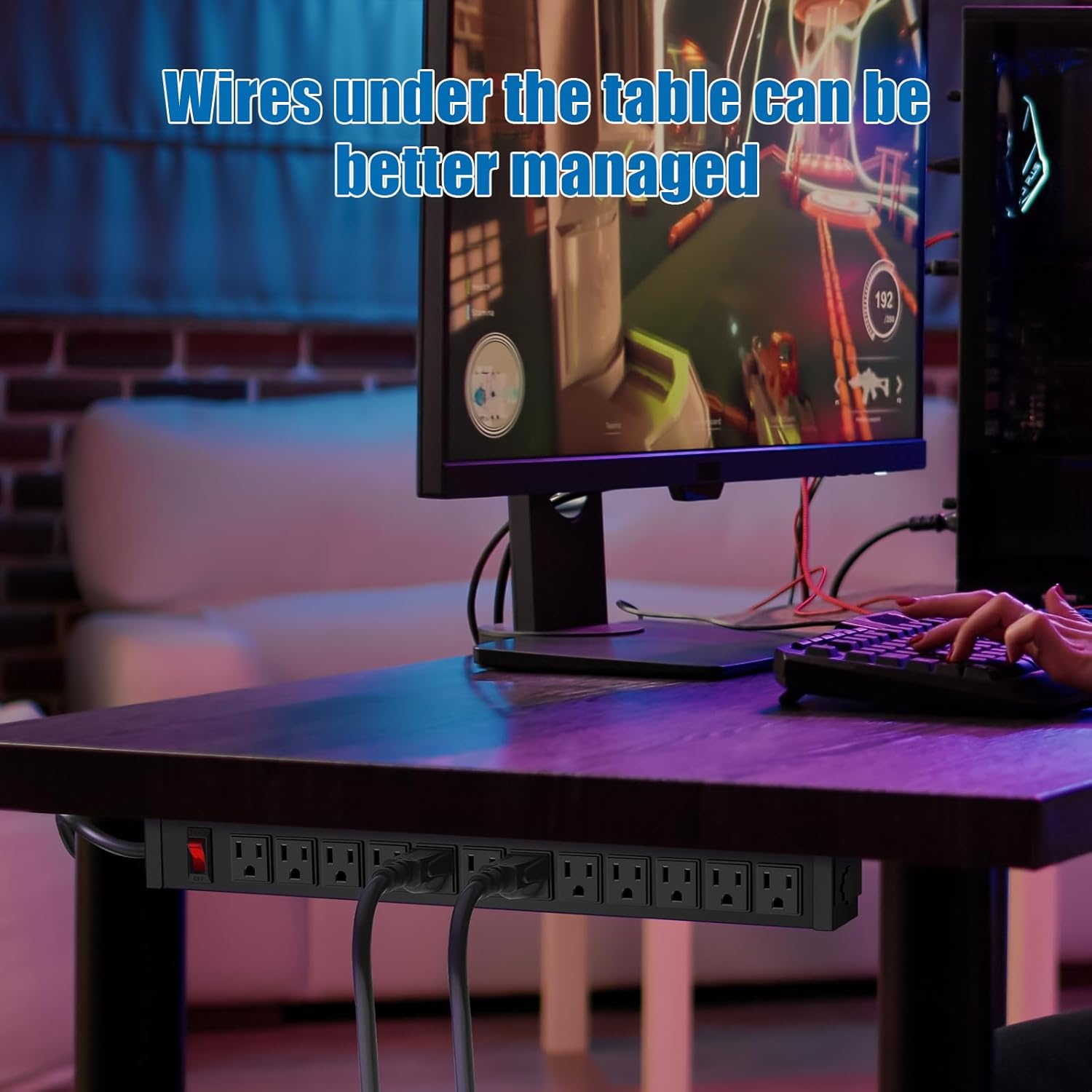 - 12 Outlet Mountable Power Strip: 12 outlets for more of your needs, with a 3-foot 14AWG power cord and 15A high current, max power: 60Hz/125V/15Amp/1875W. Package includes 4 mounting screws.