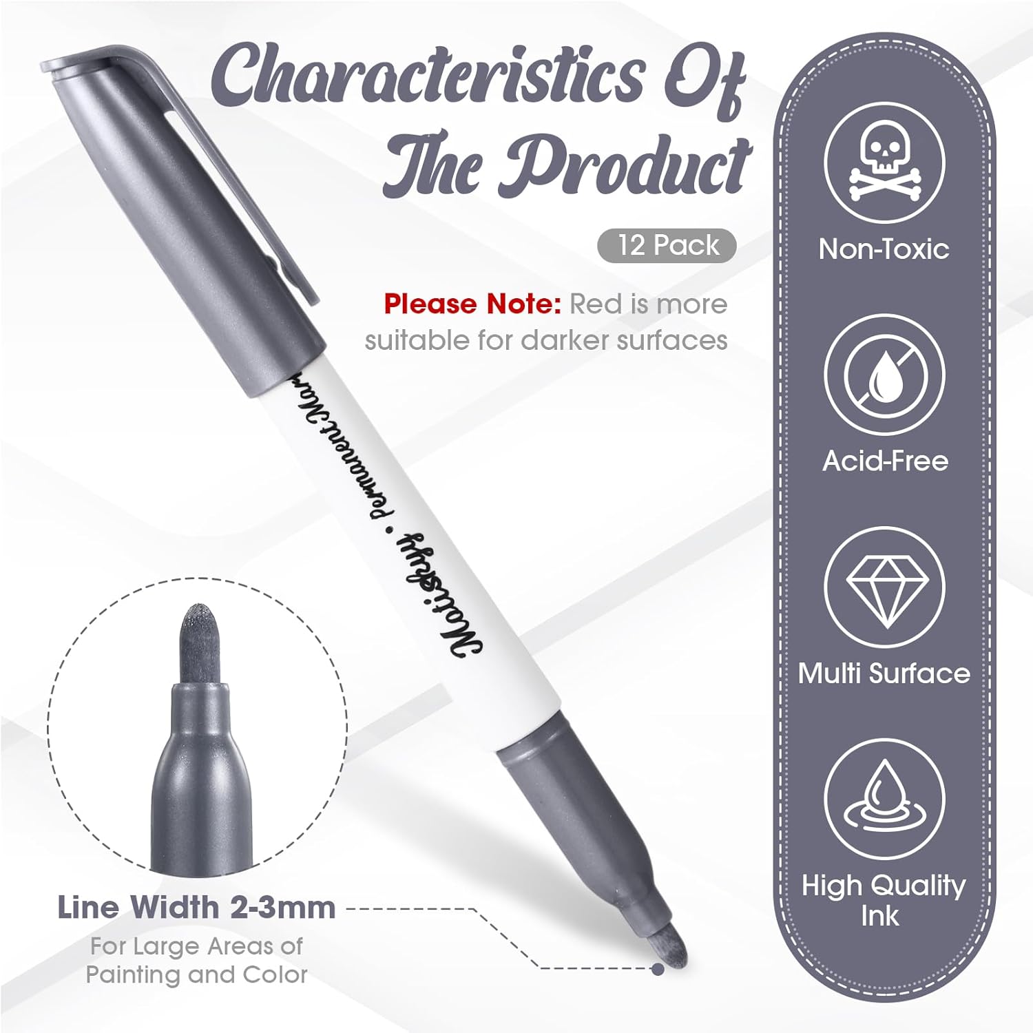 - Product Includes: The package contains 12 pieces of metallic permanent markers, gold, silver, copper, 4 of each color, which are perfect for adding brilliance and decoration to various crafts; Please note: the caps need to be covered when not in use to prevent the ink from drying
