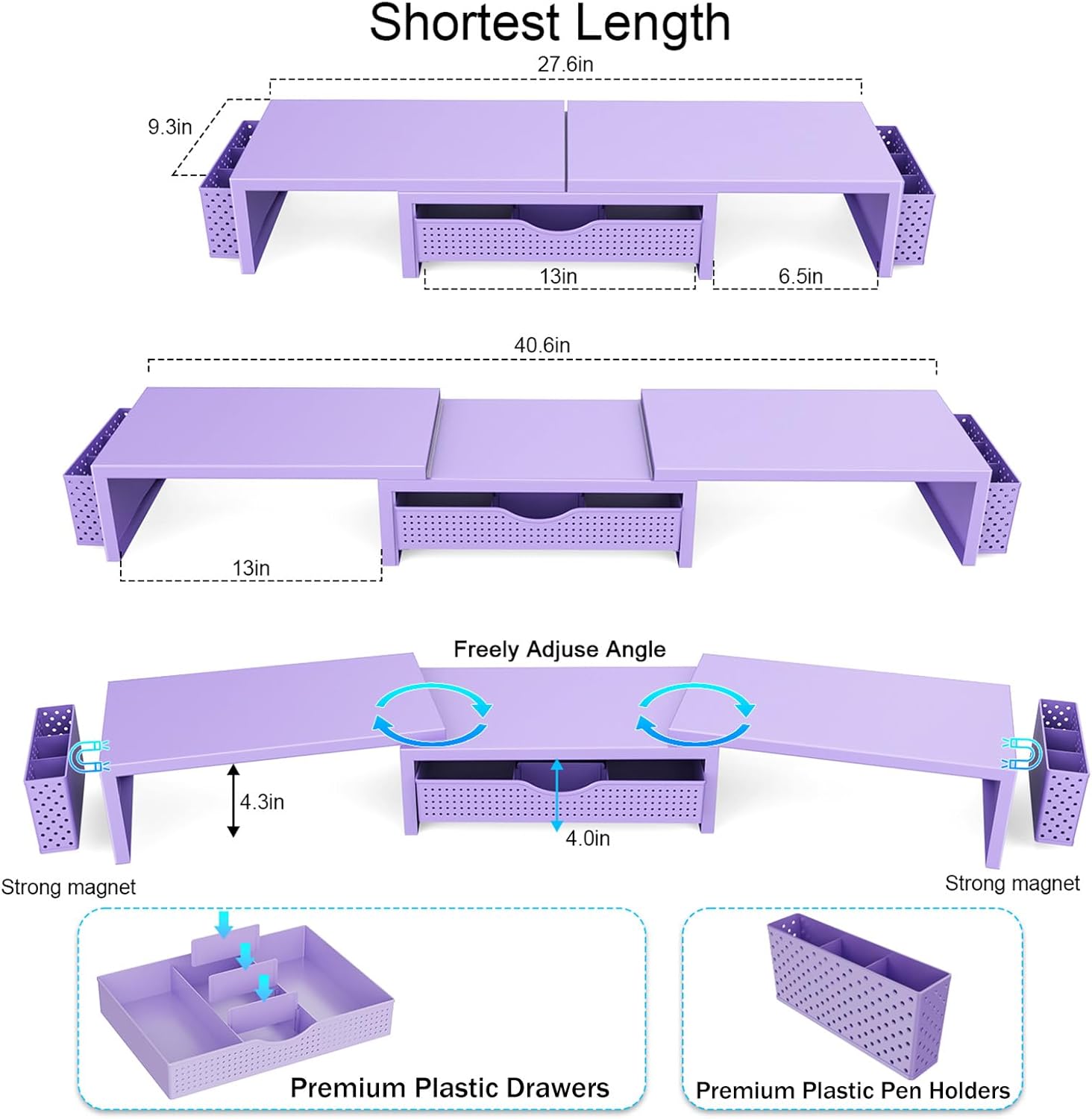 gianotter Dual Monitor Stand Riser, Desk Organizer With Drawer and 2 Pen Holders, Desk Organizers and Accessories, Purple Office Decor (Purple)