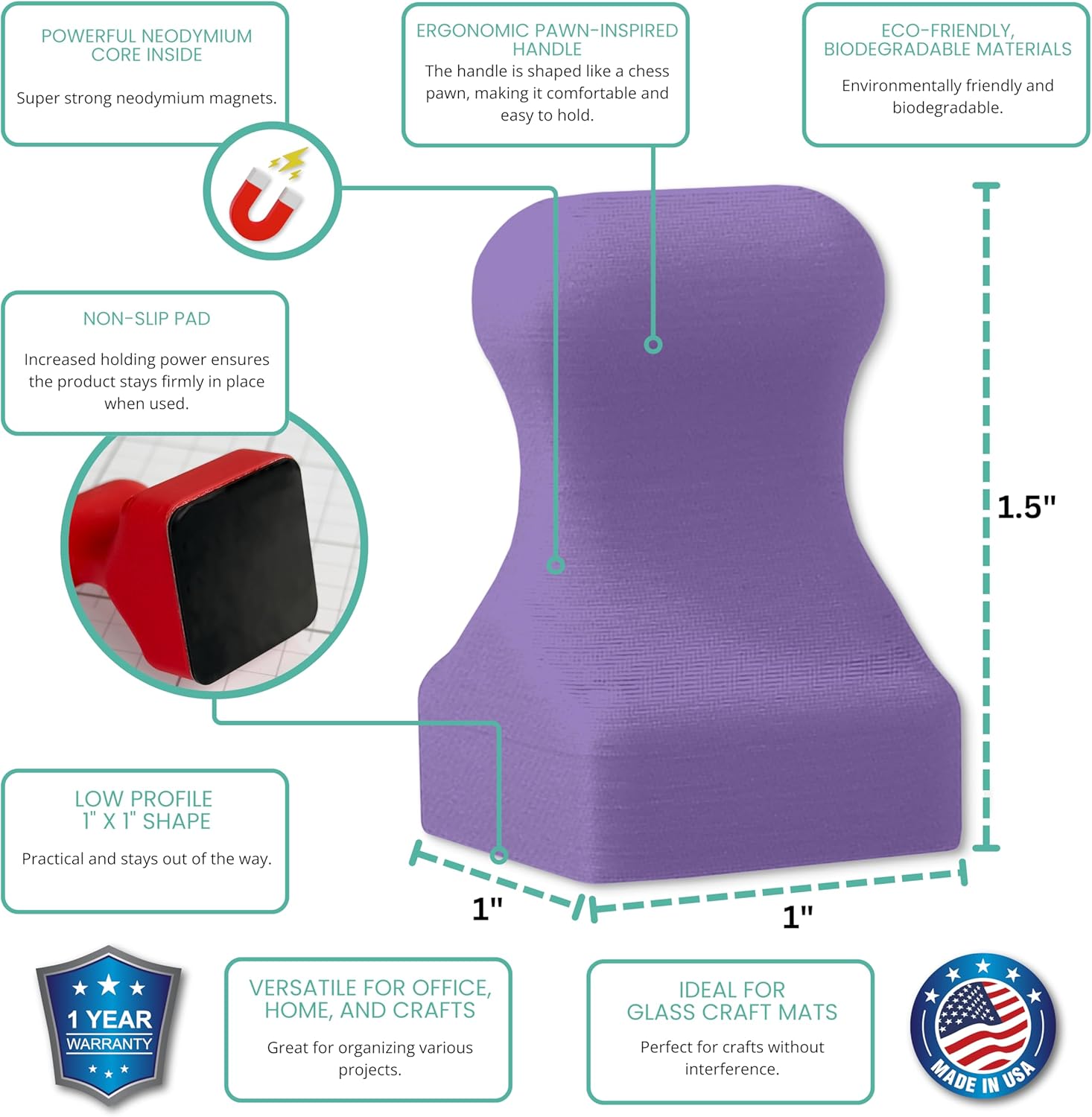 Glassboard Studio MiniPawn Magnet - Strong Neodymium Rare Earth Magnets for Fridge, Whiteboard, Locker & Magnetic Glassboards - Crafting & Office Use - Strong Fridge Magnets (Periwinkle Purple, 12)