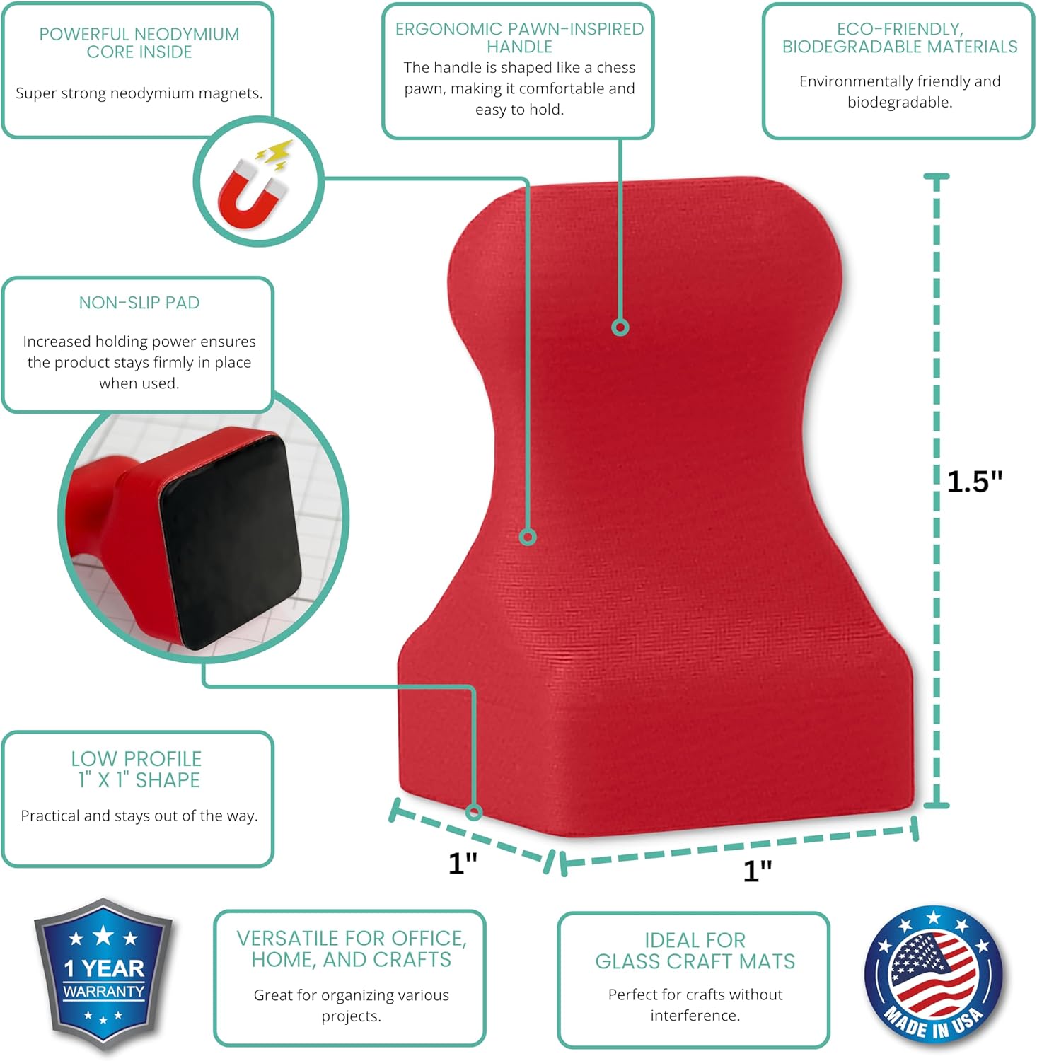 Glassboard Studio MiniPawn Magnet - Strong Neodymium Rare Earth Magnets for Fridge, Whiteboard, Locker & Magnetic Glassboards - Ideal for Crafting & Office Use - Strong Fridge Magnets (Cherry Red, 2)
