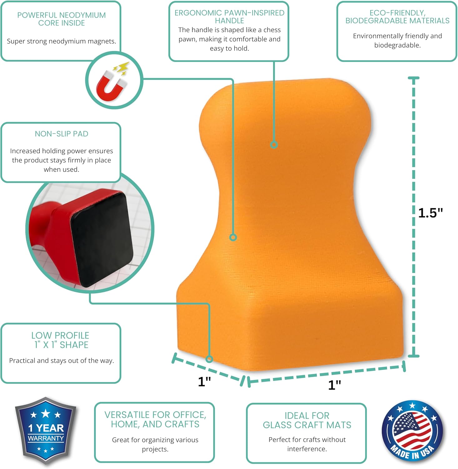 Glassboard Studio MiniPawn Magnet - Strong Neodymium Rare Earth Magnets for Fridge, Whiteboard, Locker & Magnetic Glassboards - Crafting & Office Use - Strong Fridge Magnets (Tangerine Orange, 4)