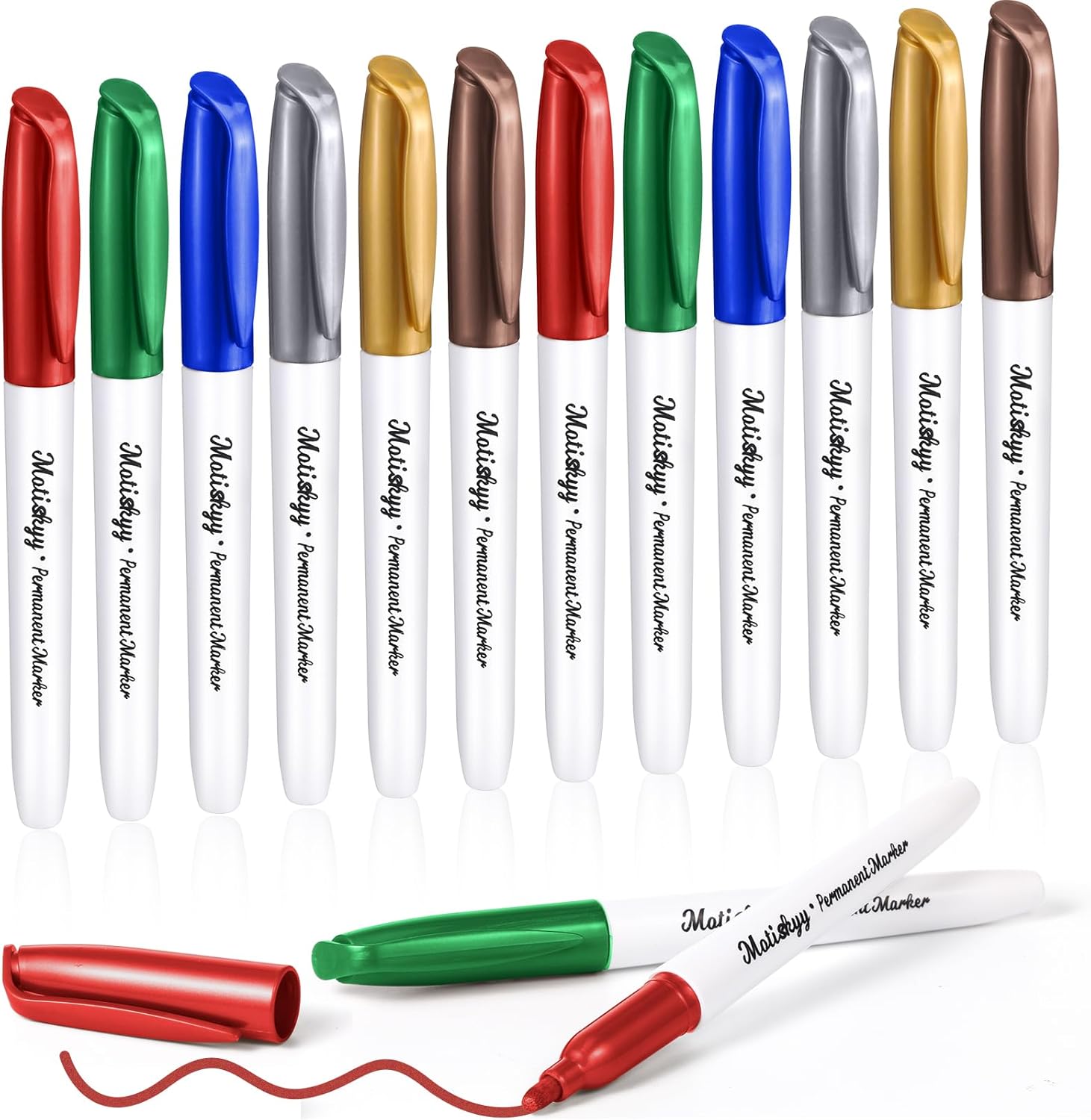 - Product Includes: The package contains 12 pieces of multicolor metallic permanent markers, which are perfect for adding brilliance and decoration to various crafts; Please note: the caps need to be covered when not in use to prevent the ink from drying