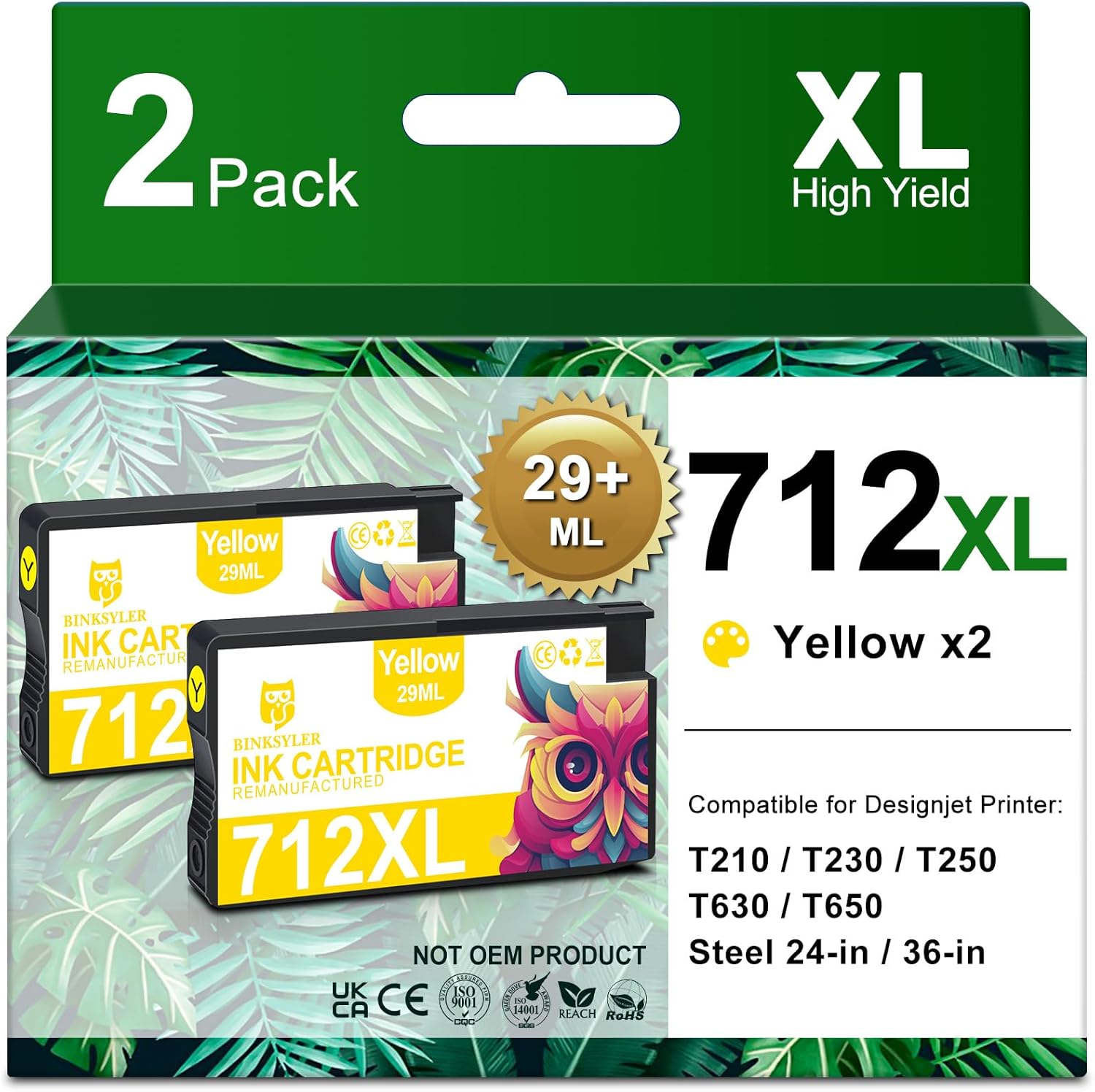 - ăWhat is Includedă2-Pack 712 Yellow Ink Cartridges (29-ML x 2) with 100% compatibility, better print performance, and the same quality as the original.