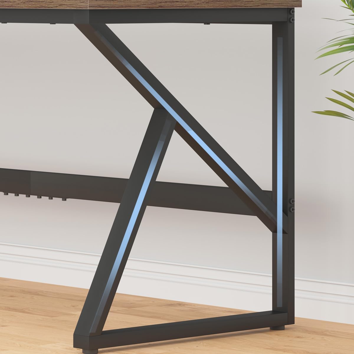 - ăSturdy Constructionă: Constructed with three high quality MDF panels and two thicken K-shaped metal legs, this wood and metal desk ensures the stability during use and can support up to 400lbs of weight. The adjustable 4 levelers can be used in uneven ground to keep the pc laptop table balance and prevent scratches.