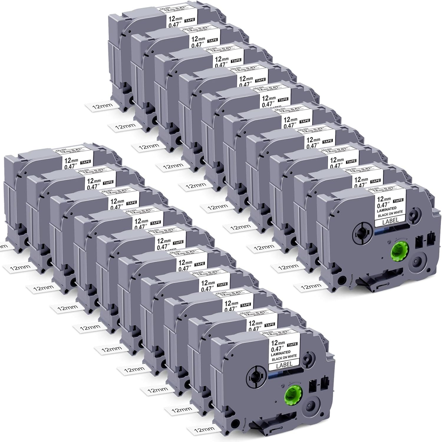 20PK Compatible with Brother Label Maker TZe-231 TZe Tz Tape 12mm 0.47 Laminated White P Touch Label Tape, Compatible wit