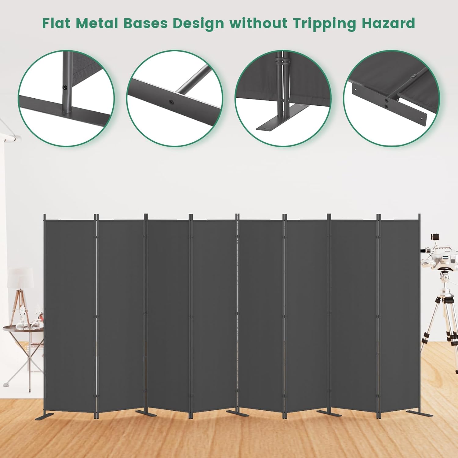 Helios&Hestia 8-Panel 6 ft Tall Indoor Folding Room Divider, Portable Privacy Screen, Freestanding Partition Separator, Temporary Wall Separation for Bedroom, Office, 160" W X 71" H, Dark Grey