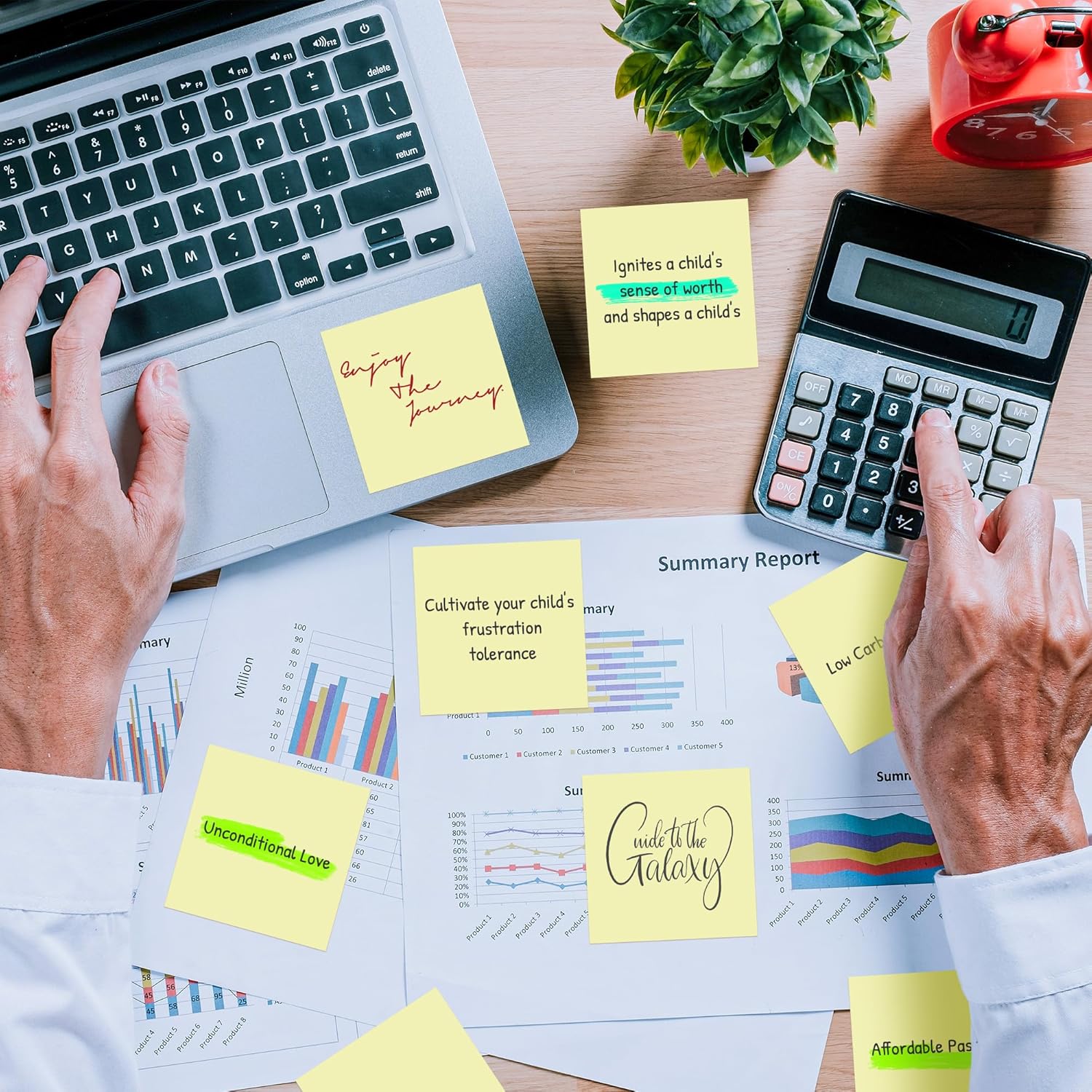 - 【YELLOW STICKY NOTES 】The Color Yellow freshens up your ideas and makes the sticky notes catch your attention easily.
