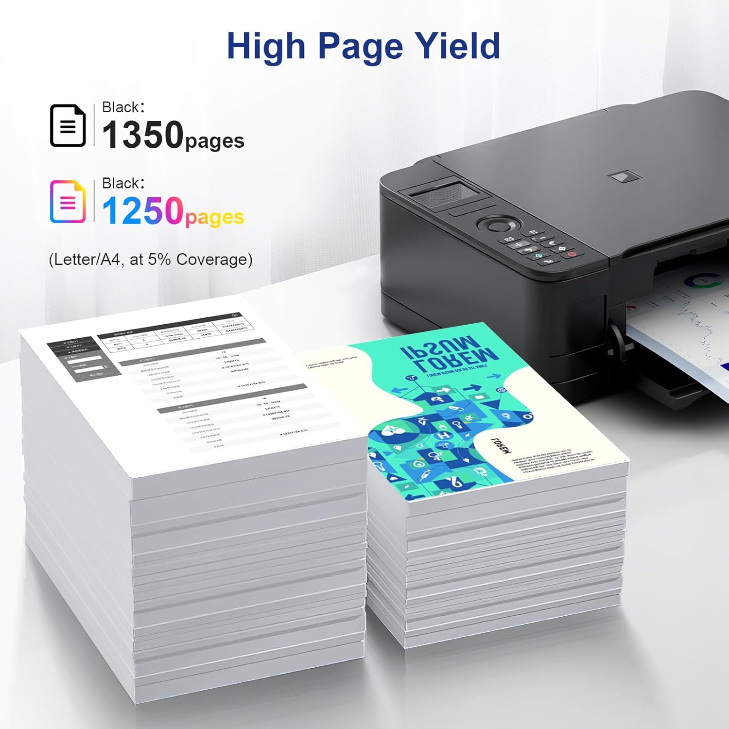 - Page Yield: Up to 1350 pages per Black 206A toner cartridge works with HP Color printer , Color is 1250 pages per 206A toner at 5% coverage(Letter/A4).
