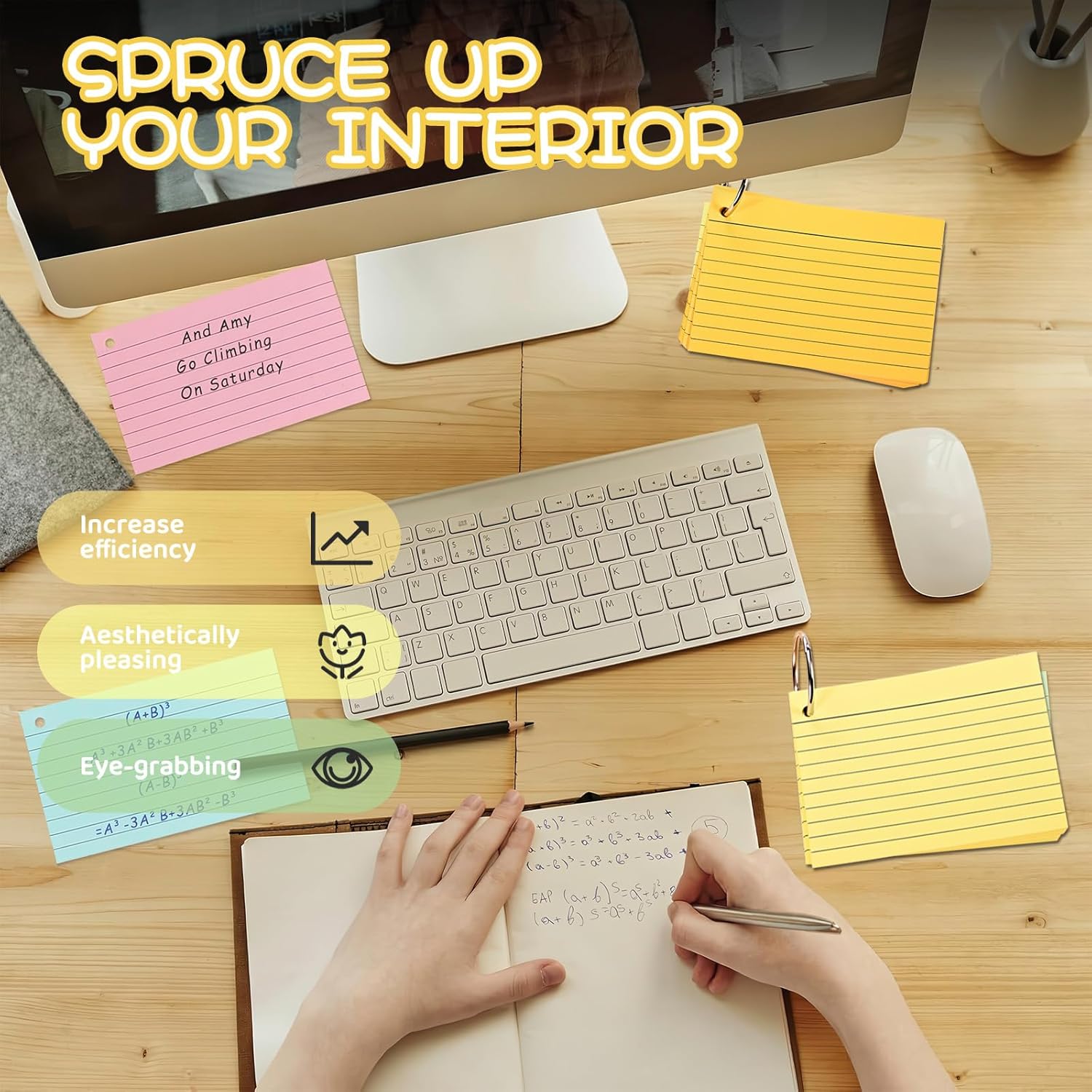 - 【Made for Quality】Index cards with ring are sturdy and thick enough to withstand regular handling without tearing or fraying, allowing you to write smoothly without penetration. They are also easy to write on with various pens or markers