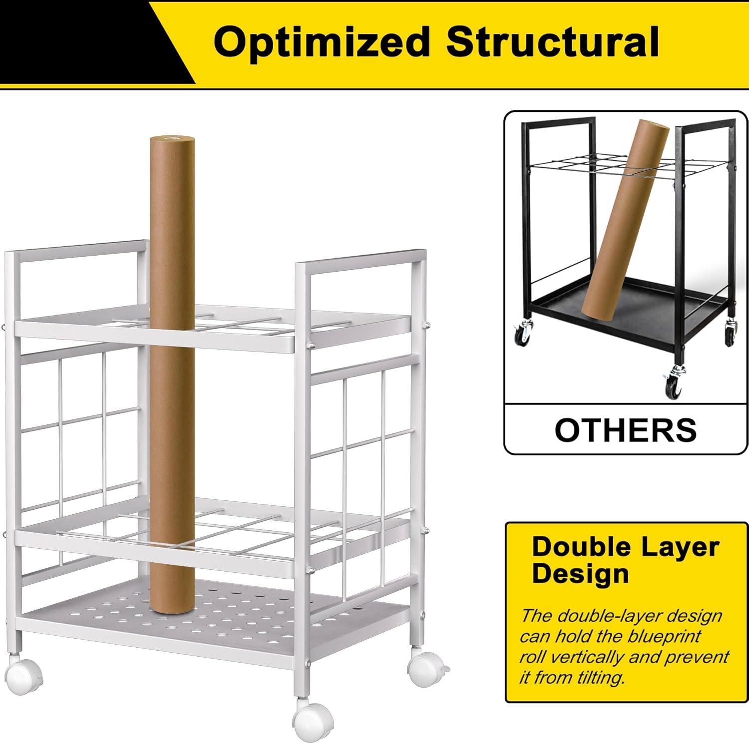 - 【Simplicity is Durability】Our blueprint storage rack cart has the simplest design. All-metal design, 12 compartments for storage, double-layer anti-tipping design, #-shaped appearance, and wheels. Yes, it's just that simple.