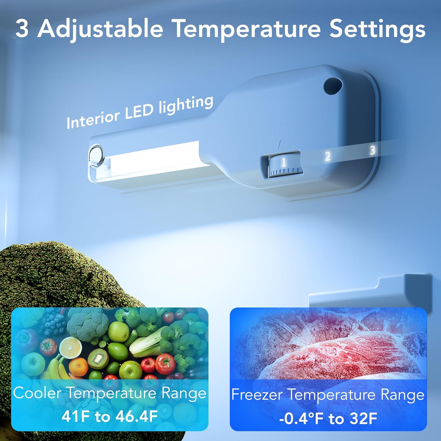 - The small refrigerator with thermostatic knob can be adjusted to 32°F to 50°F in the refrigerator compartment / 3°F to -1°F in the freezer compartment. Turn the thermostatic knob, meet the different temperature requirements of different foods.
