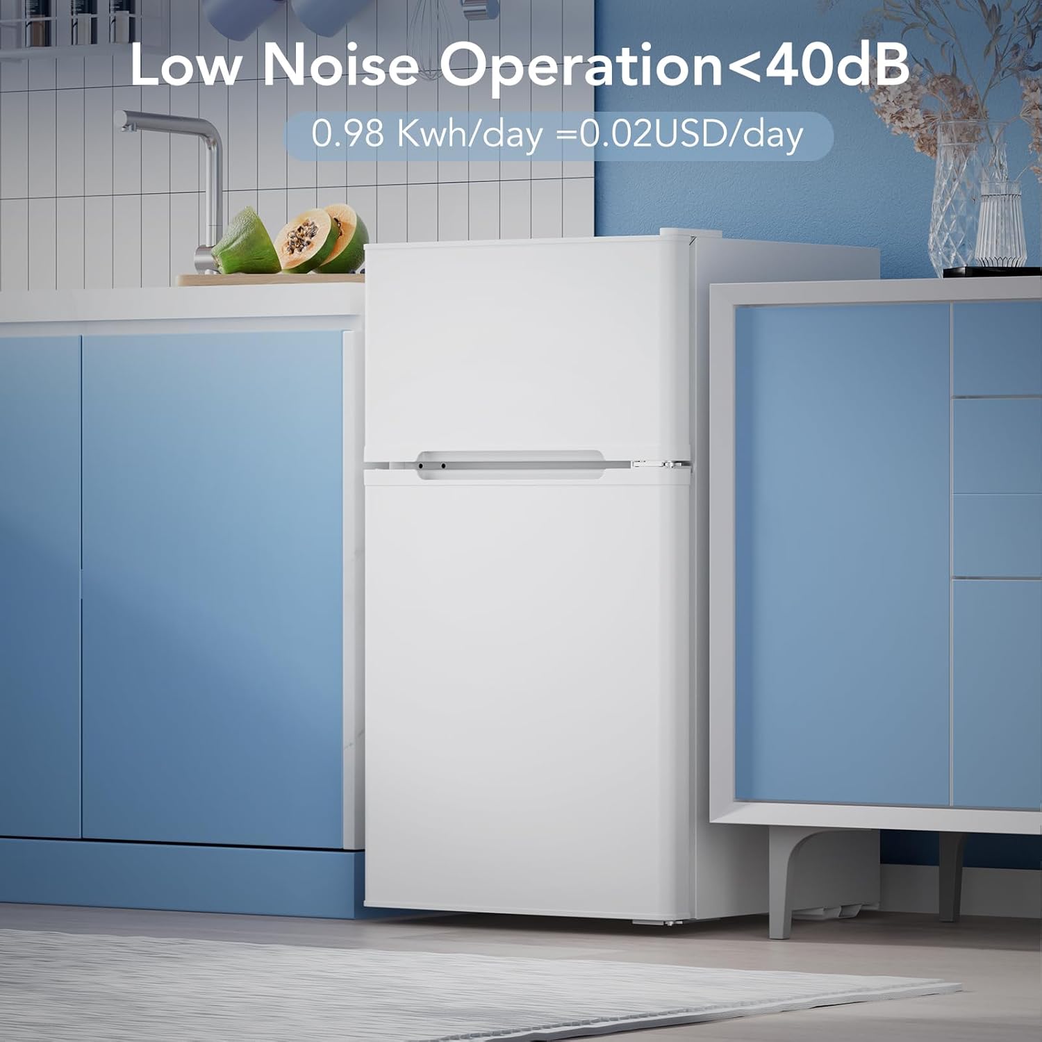- The mini fridge for office adopts R600 type high-efficiency low-energy-consumption compressor is adopted, cooling fast and low noise<38dB, is ideal for everyday use. Note: The refrigerator does not have an automatic defrost function, needs manual defrosting.