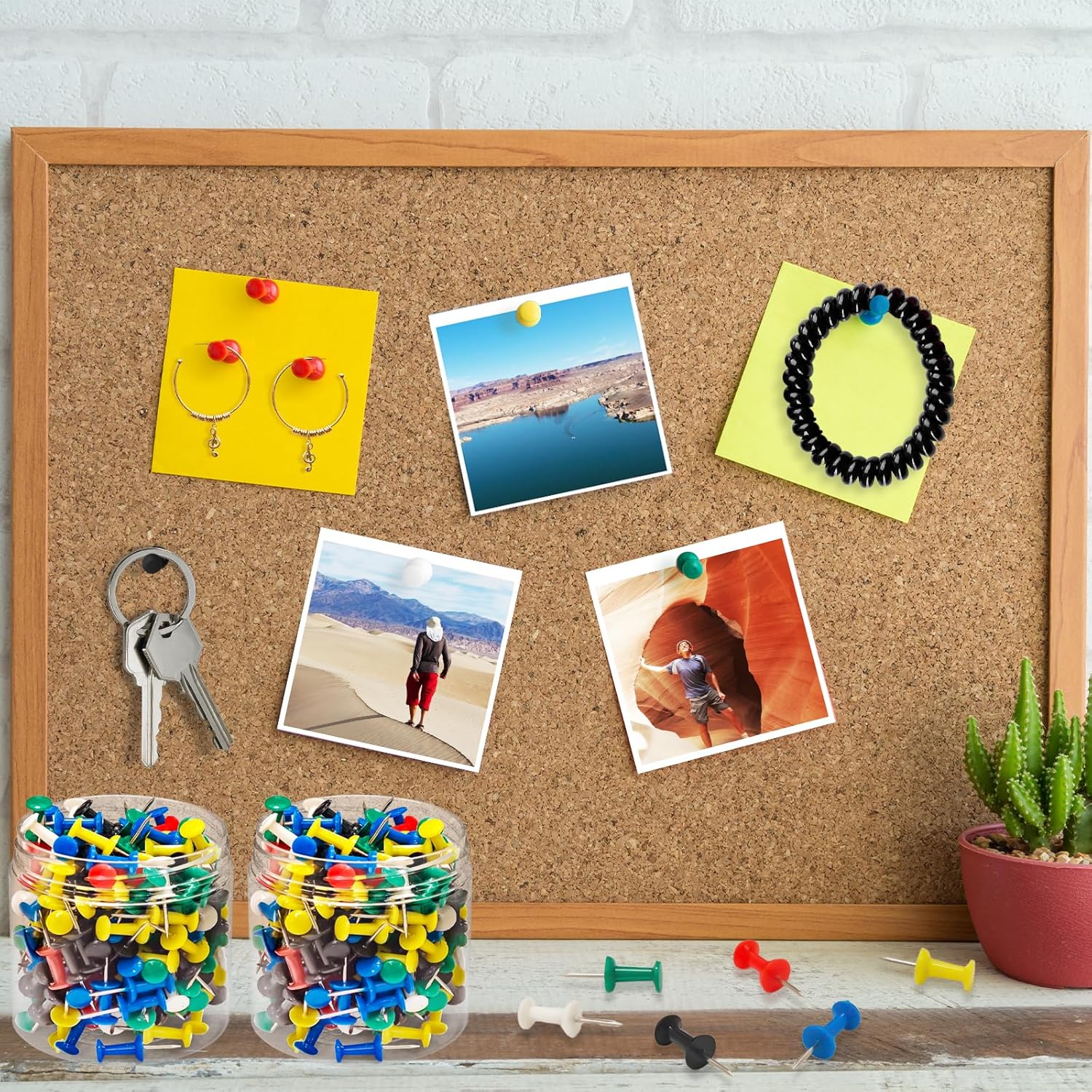 - MATERIAL AND COLOR: Our push pins for wall are made of clear plastic head and steel point, sturdy and reliable, not easy to bend or break. These thumbtacks come in six colors: red, yellow, blue, green, white and black, suitable for color-coded organization on bulletin board borders or office classroom decor