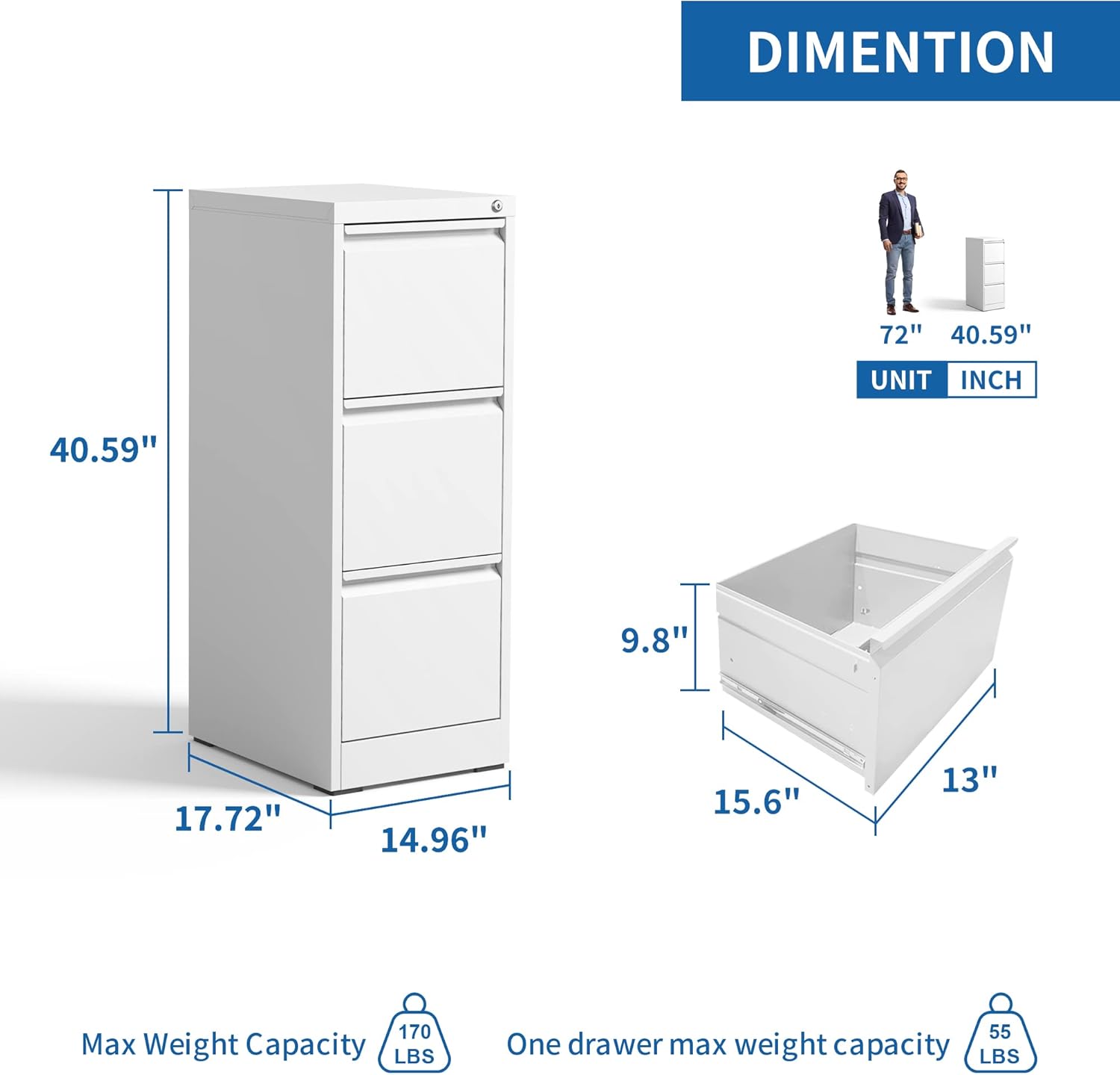 - ăMultiple Storage TypesăThis 3 drawer of the metal cabinet for home office is larger and deeper than similar cabinets in the market. Making it the perfect solution for all your storage needs. The drawers of the locking file cabinet are also equipped with one adjustable hanging rail, allowing you to perfectly store letters, legal, A4 size folders and file box to meet your different needs.