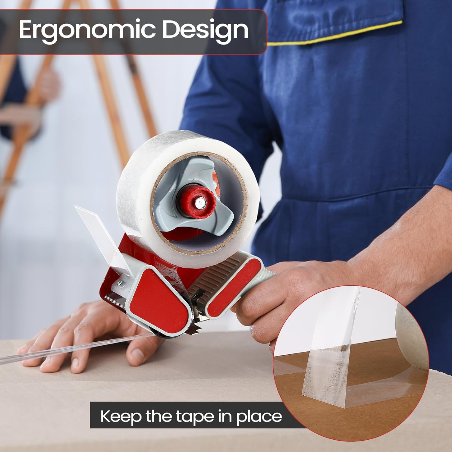 - Easy to Use: our packaging tape with dispenser is safe and simple to use; Place the tape on the roller, tear the tape, and thread one end through the metal sheet; Is ready to use; After it makes sealing multiple package easily without losing many time