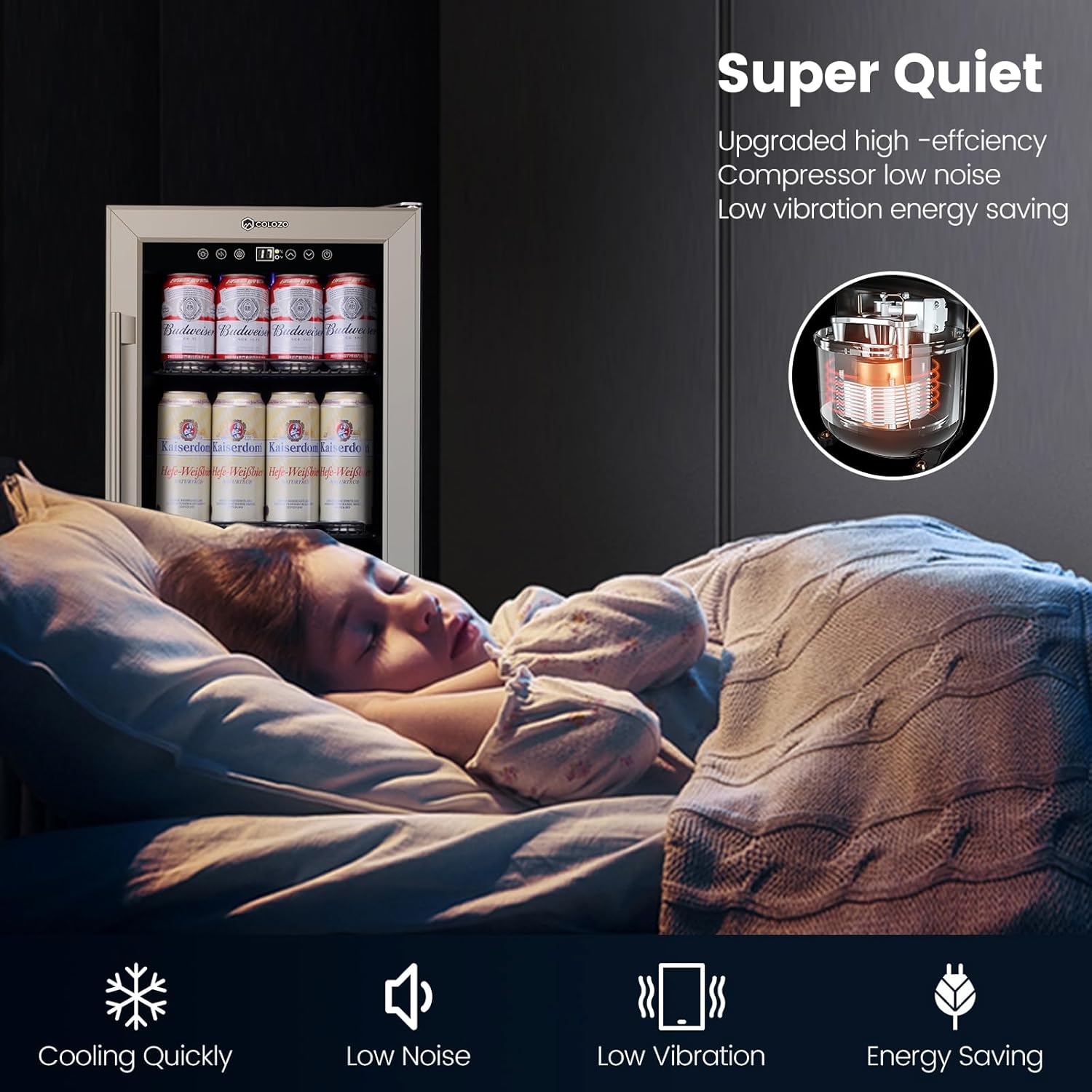 - Upgraded Compressor Beverage Cooler: The under counter beverage refrigerator features an upgraded compressor that quickly cools down your drinks while providing a stable temperature environment. The low vibration operation ensures that your daily life remains uninterrupted while enjoying perfectly chilled beverages