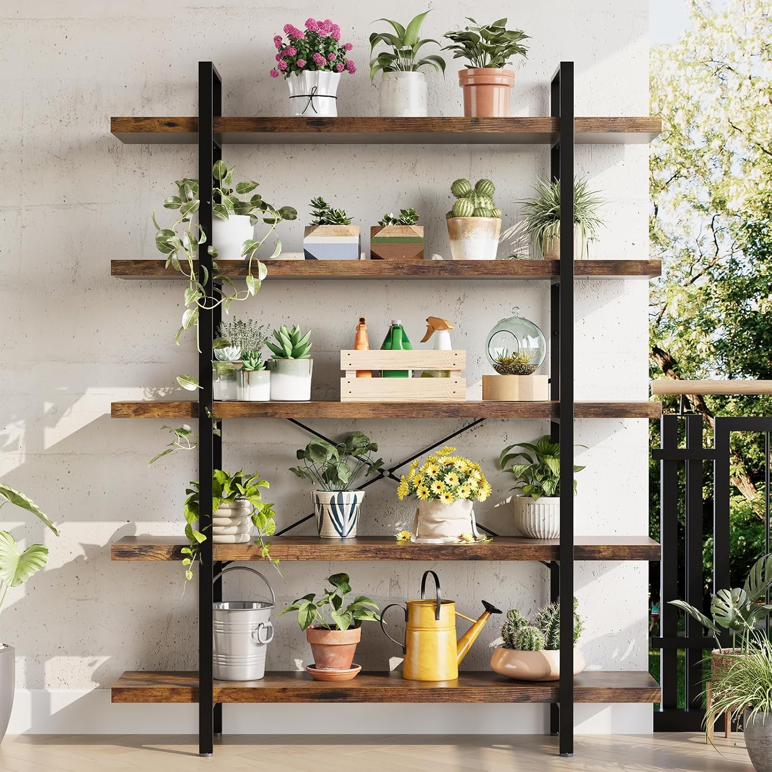 - Versatile Industrial Design: Expertly crafted with high-quality metal and rich brown wood shelves, this five-tier bookshelf seamlessly blends sturdy construction with an industrial charm that complements various decor styles, from modern to rustic