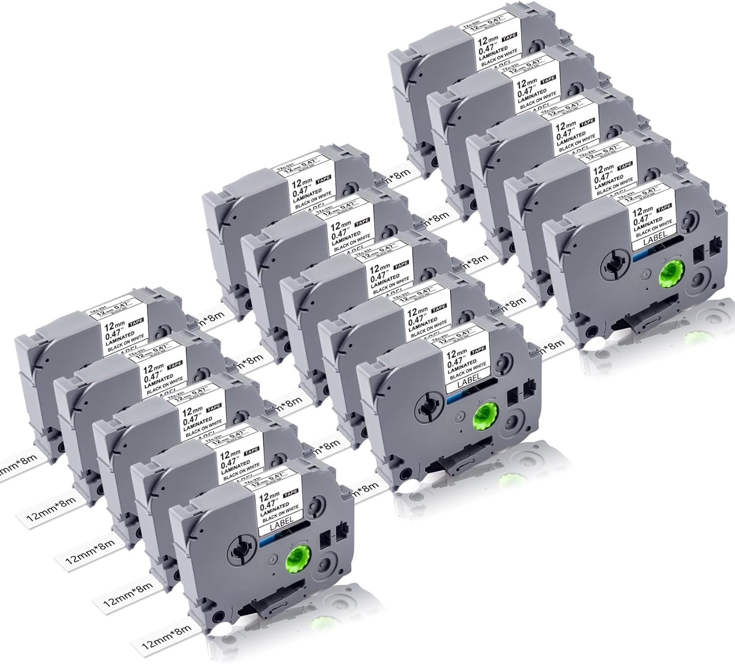15Pack TZe-231 Label Maker Tapes Replacement for Brother P Touch Label Maker Refills, TZe231 Tape Laminated 12mm 0.47 White, TZ-231 Tapes for Brother PT-H110 PTD210 PTD220 PTD400 Printer