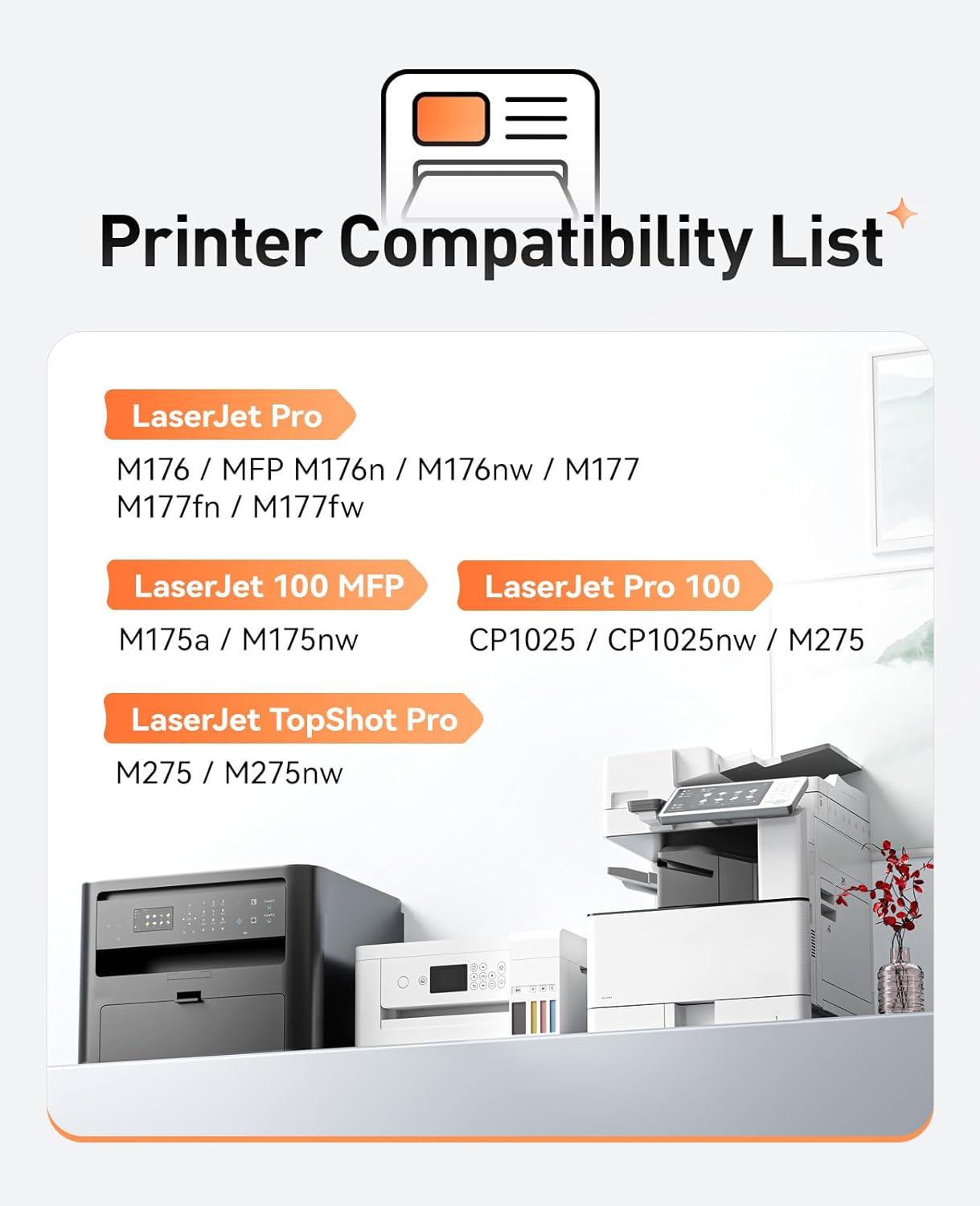- Compatible Printer: Compatible with HP Color LaserJet Pro M176 MFP M176n M176nw M177 M177fn M177fw HP LaserJet Pro 100 CP1025 M275.Color LaserJet 100 MFP M175a M175nw LaserJet TopShot Pro M275 M275nw LaserJet Pro CP1025 CP1025nw series printer.