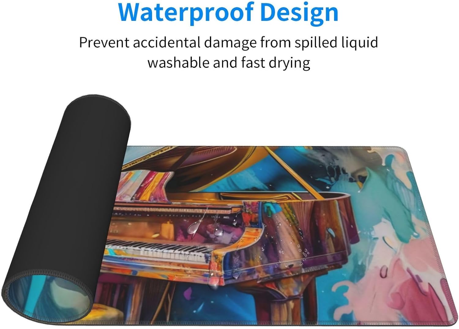 Gaming Mouse Pad, Large Non-Slip Rubber Base Mousepad, Keyboard Mouse Mat, Desk Pad with Stitched Edges, 31.5x11.8inch, Oil Painting of Piano