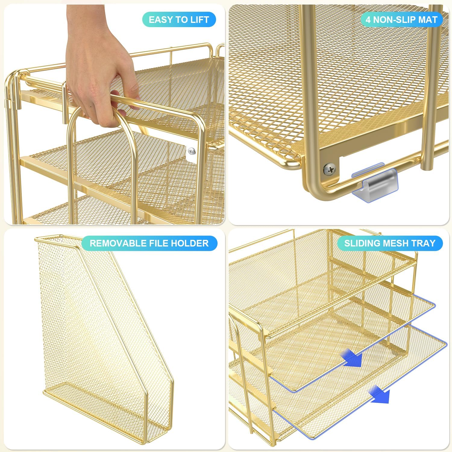 gianotter 4-Tier Paper Organizer With Magazine Holder, Desk Organizers and Accessories, Gold Desk Accessories, File Organizer for Office Supplies Storag(Gold)