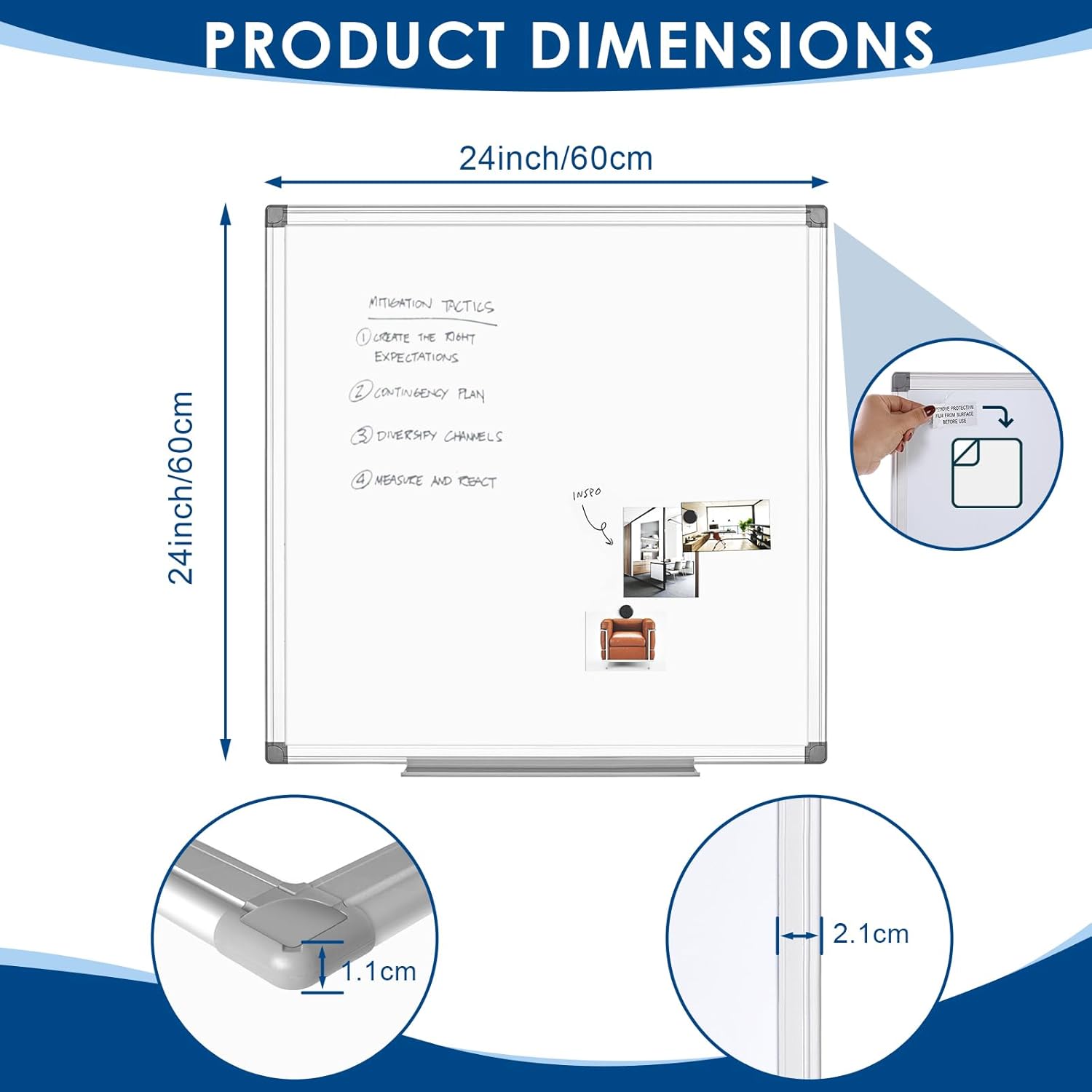 - Multi-Use: The 24x24 dry erase board is designed for a variety of spaces, including offices, classrooms, clinics, dorm rooms, and home work areas. As a dry erase board for wall, it’s ideal for planning, notes, teaching, or visualizing ideas—meeting the practical needs of students, teachers, and professionals