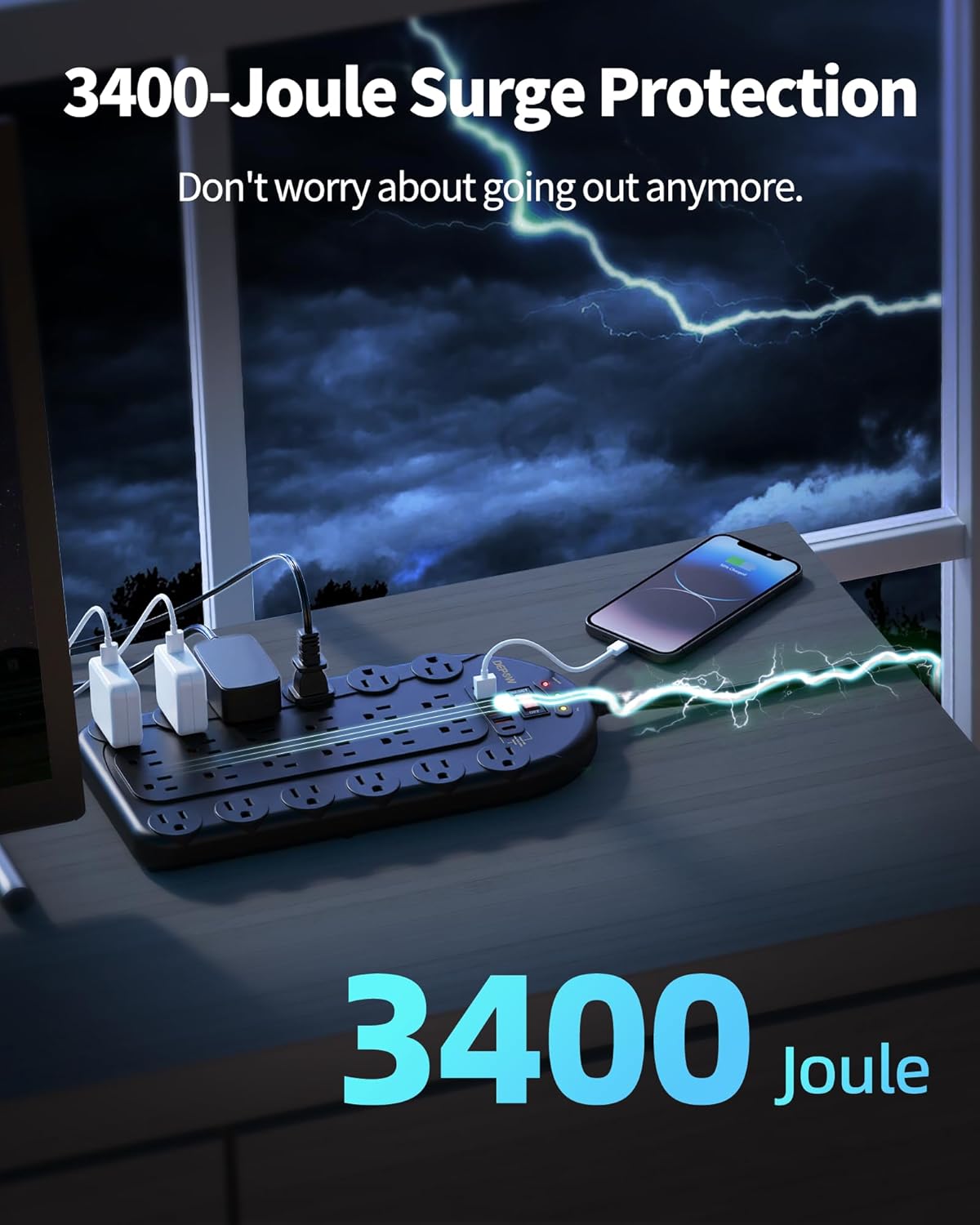 - 【Safeguard Your Devices】-This long outlet power strip has a 3400-Joule energy rating providing a reliable surge protector to protect any meeting room, office, personal workstation, or urround sound system.