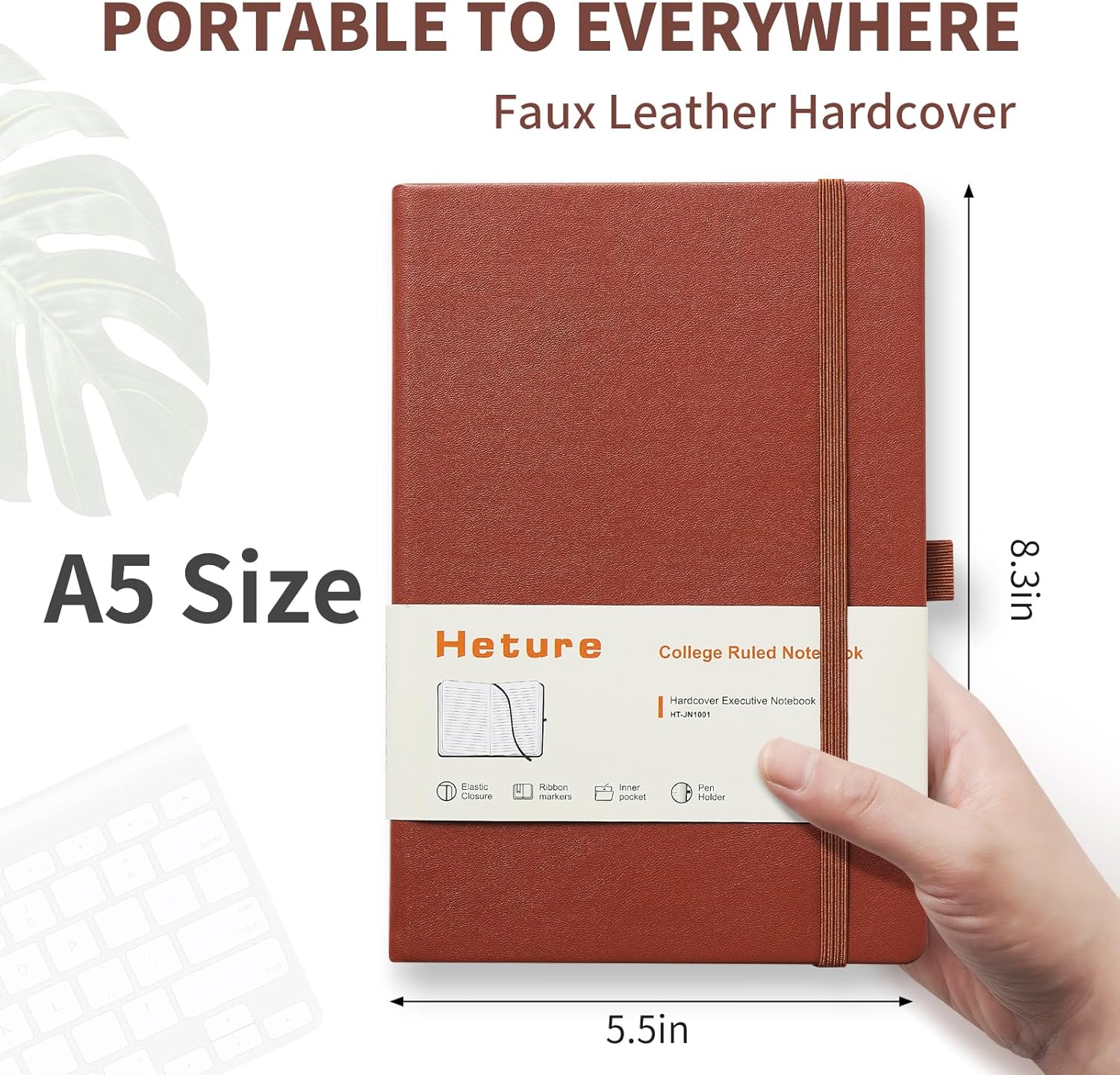 - Hardcover Business Notebook: A5 Size classic college ruled lined notebook comes with a soft touch PU leather cover, The notebook measures 5.5"Γ8.3". It is the perfect size for carrying around or put into your bag.