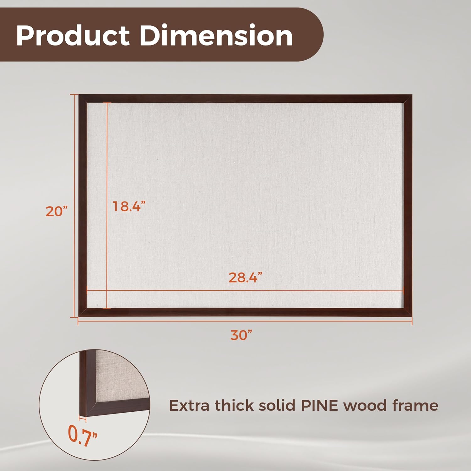 Fun Memories Cork Board Bulletin Board for Office, 20" x 30" Pine Wooden Framed Corkboard, Wall Mounted Notice Pin Board for School Home & Office, Dark Walnut