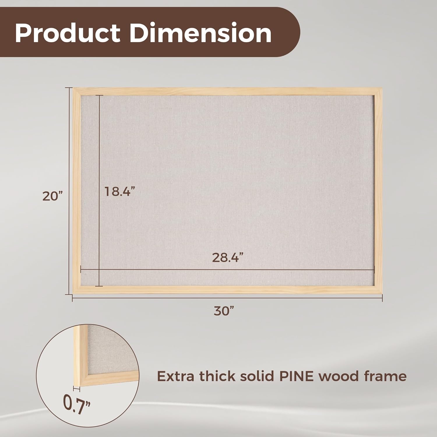 - Pine Frame Material: Our cork boards for walls is made of 100% pine wood which has well self-healing ability and repairability. The pin board features a four-ply splint design that is strong and thick enough not to be punctured by thumbtacks.